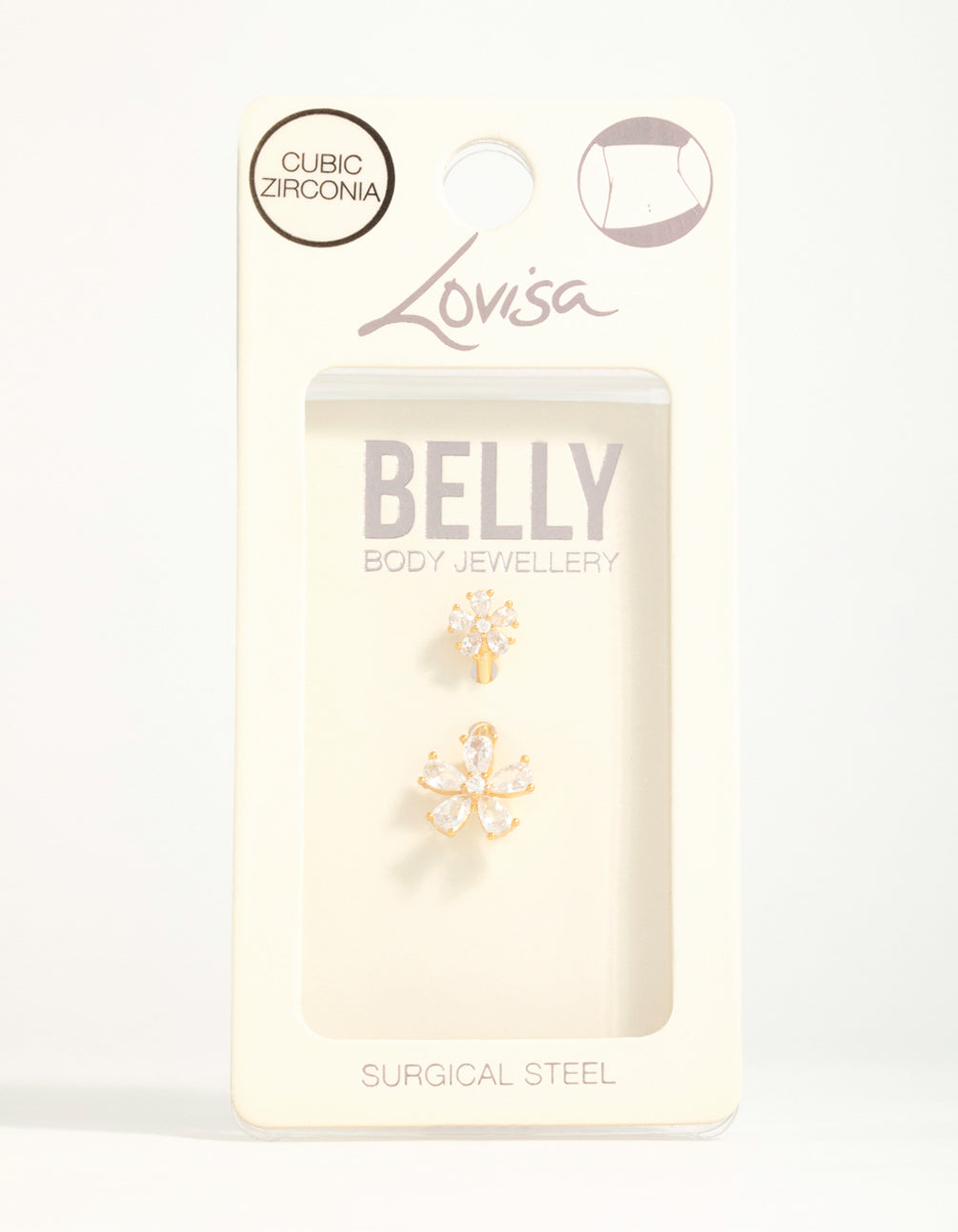 Gold Plated Surgical Steel Cubic Zirconia Double Daisy Belly Bar Gold Plated Surgical Steel Cubic Zirconia Double Daisy Belly Bar Gold Plated Surgical Steel Cubic Zirconia Double Daisy Belly Bar