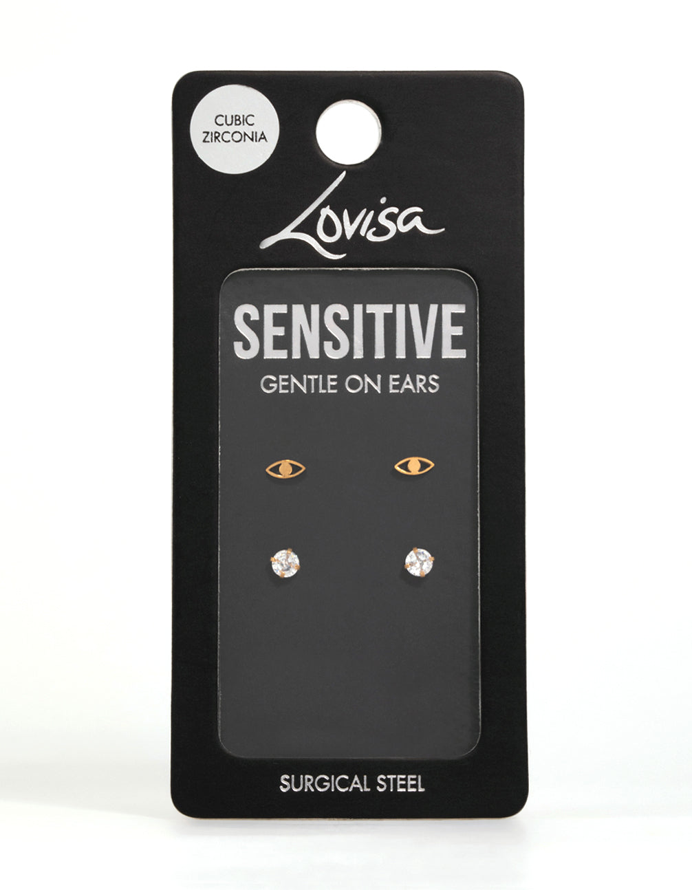 Gold Plated Surgical Steel Cubic Zirconia Eye Stud Earrings 2-Pack