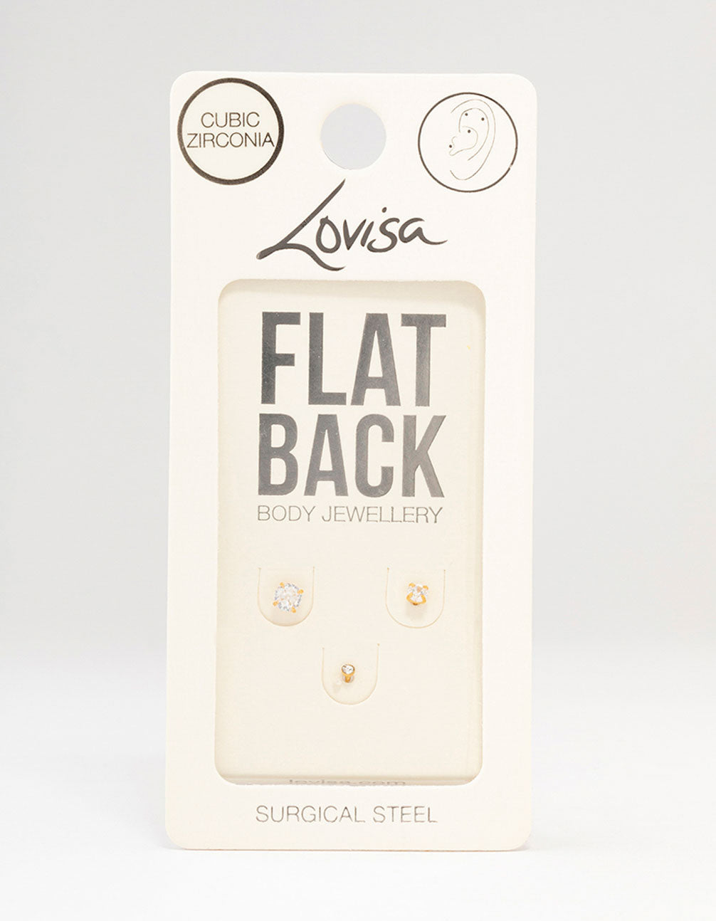 - This flat back stud pack is made from surgical steel for safe, stylish, sensitive skin friendly wear.