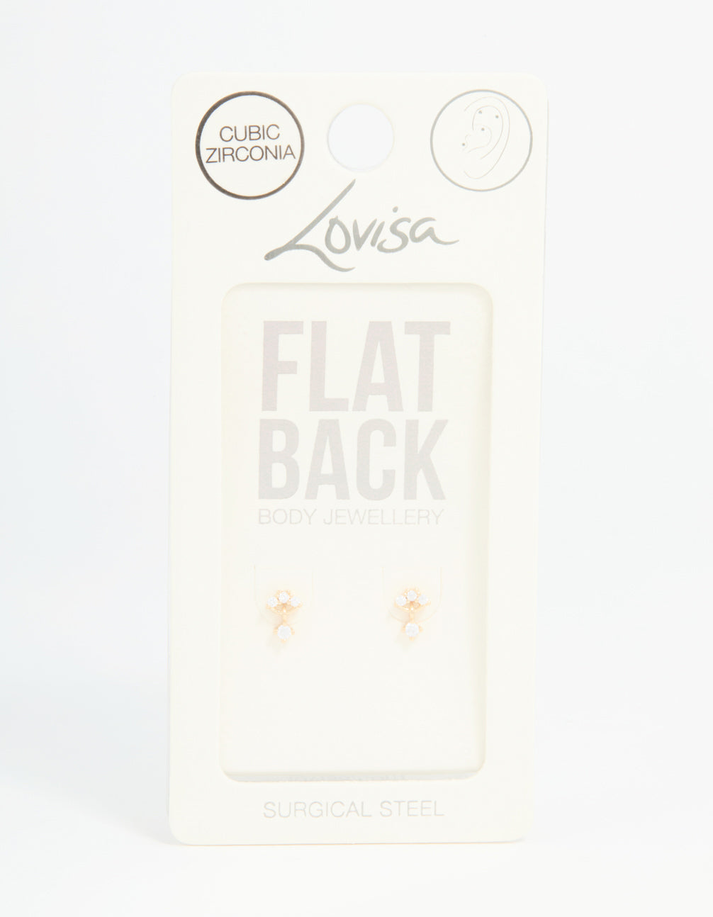 Add a touch of sparkle to your ear game with the Gold Plated Surgical Steel Cubic Zirconia Flat Back Pack. These stylish flat backs are crafted from durable surgical steel with a luxe gold plating, making them perfect for everyday wear or dressing up.