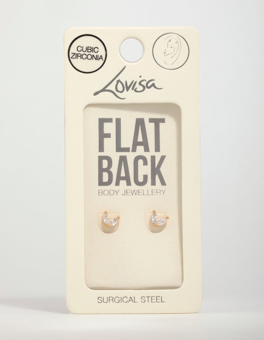 Gold Plated Surgical Steel Cubic Zirconia Leaf Flat Back Stud 2-Pack