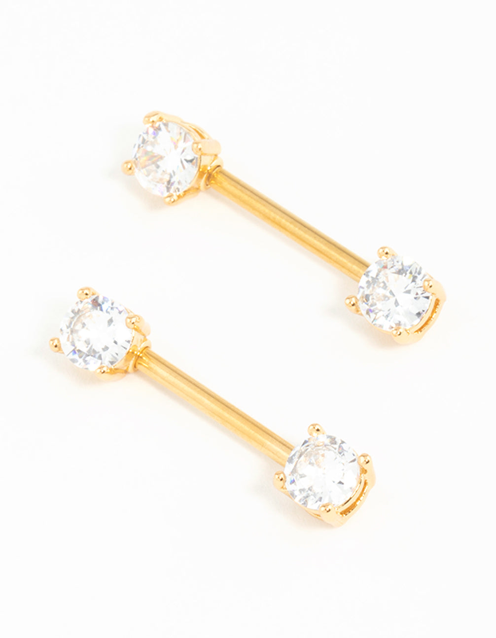 Gold Plated Surgical Steel Cubic Zirconia Nipple Bars 2-Pack