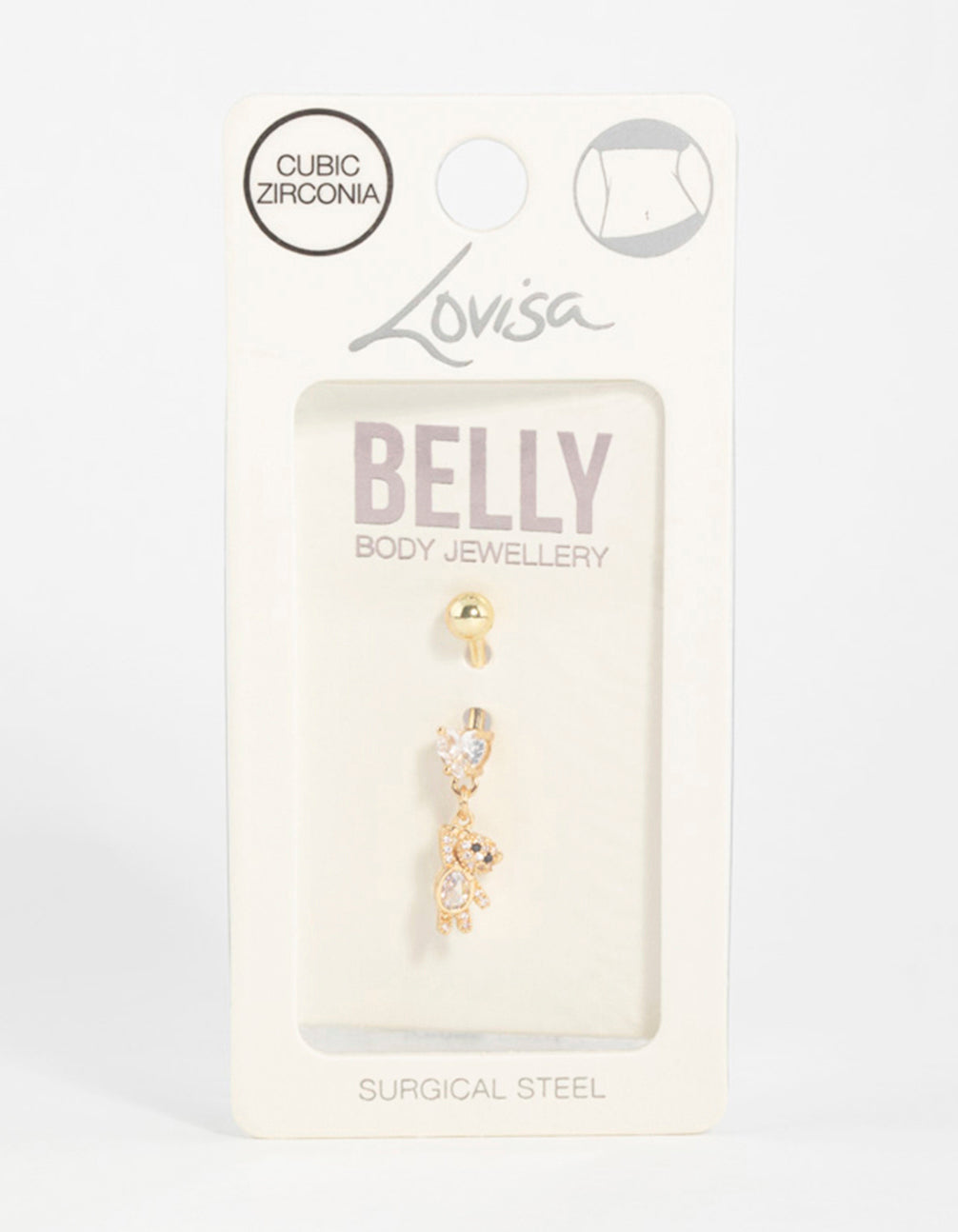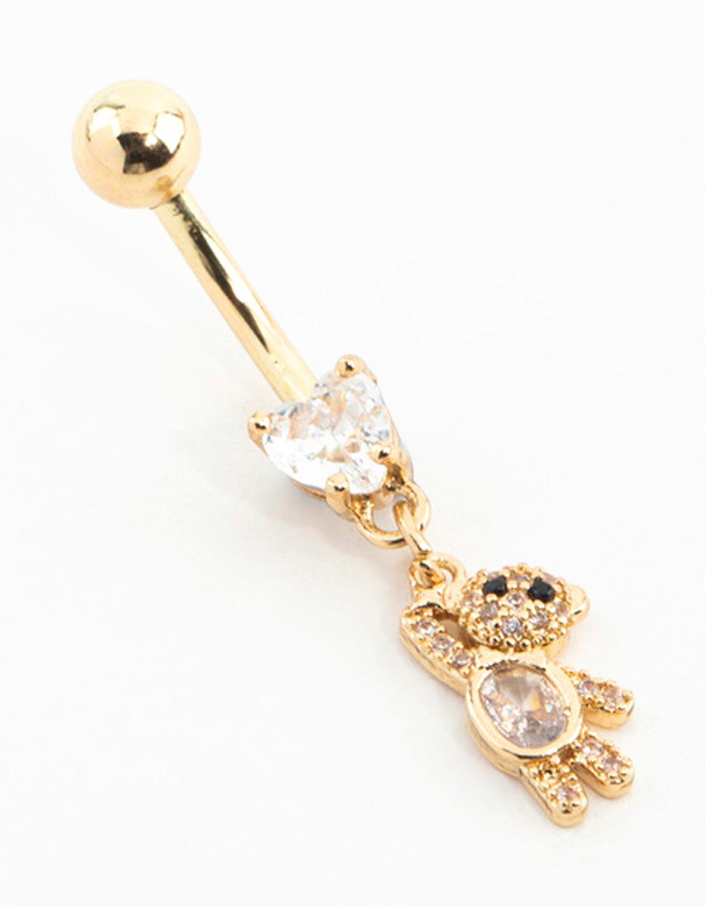 Add an adorable touch with this gold-plated surgical steel belly bar featuring a dazzling cubic zirconia teddy design. Perfect for a fun, sensitive-skin-friendly look!