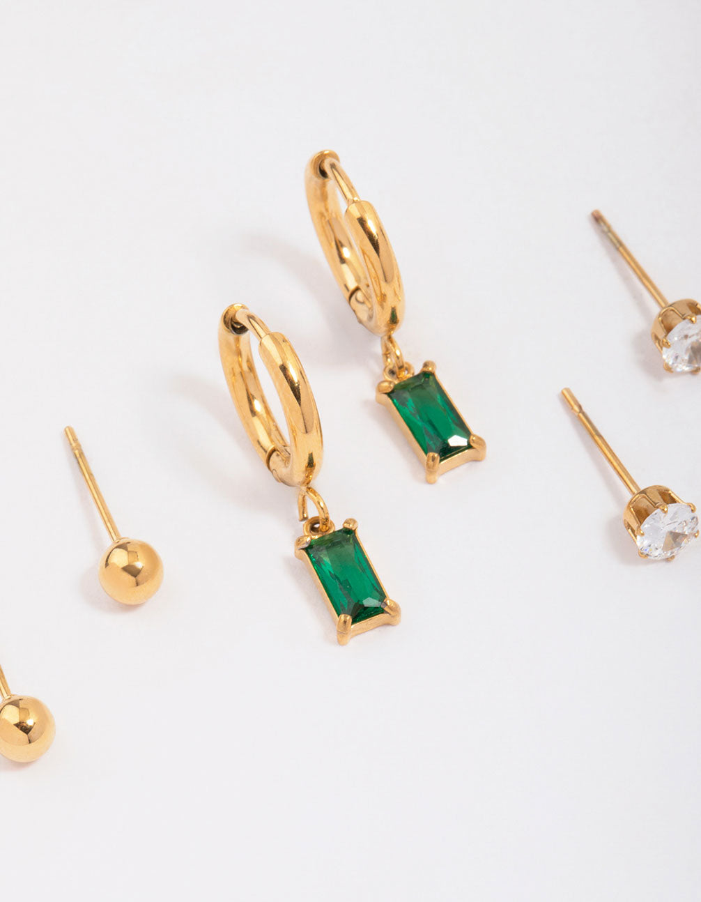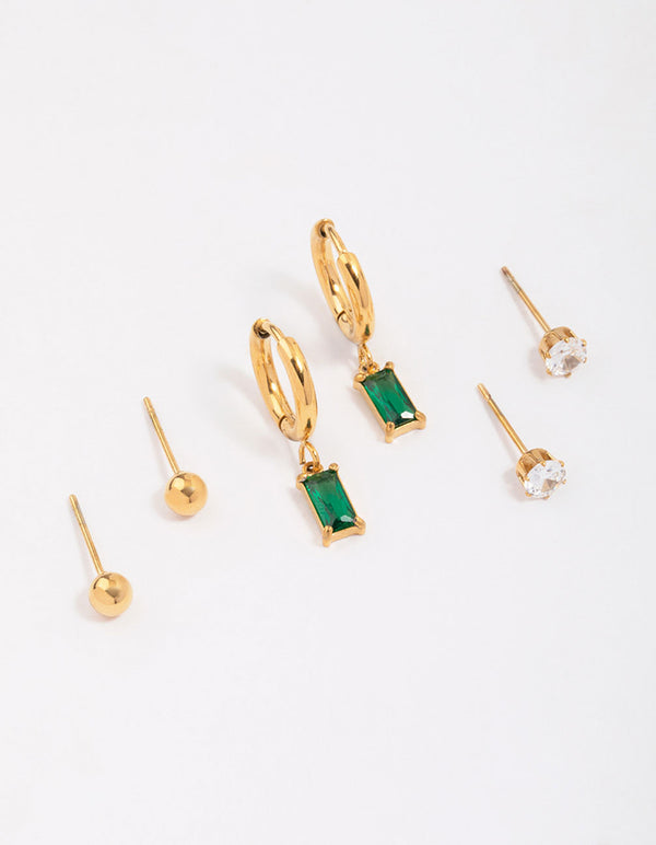 Gold Plated Surgical Steel Emerald Cubic Zirconia Earring 3-Pack Gold Plated Surgical Steel Emerald Cubic Zirconia Earring 3-Pack Gold Plated Surgical Steel Emerald Cubic Zirconia Earring 3-Pack