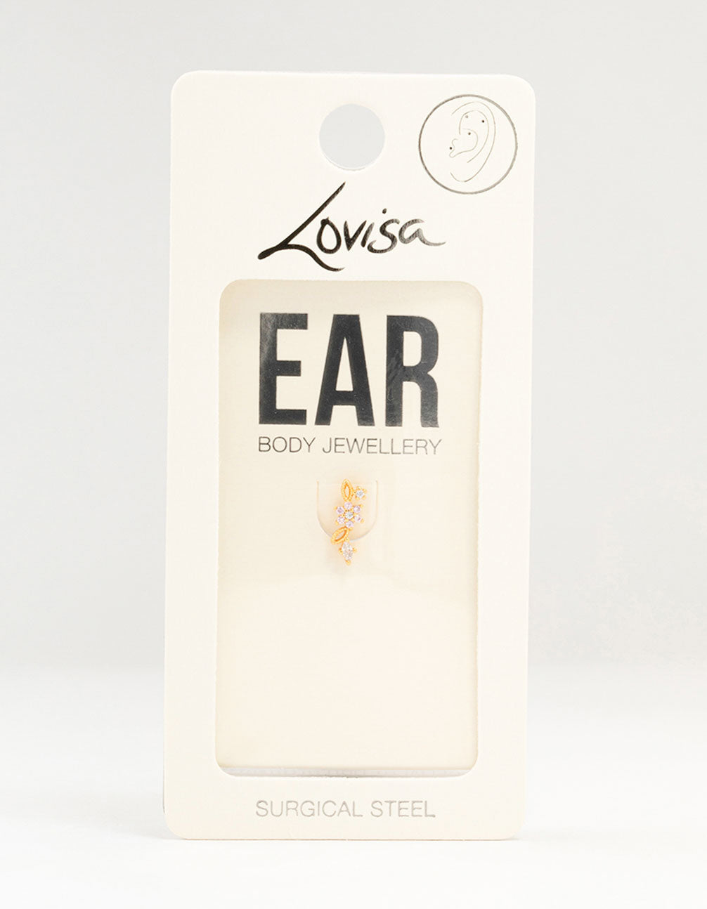 Add a pop of floral beauty and shine with this gold plated surgical steel flower and leaf flat back stud! Crafted from durable surgical steel and coated in lustrous gold plating, it's perfect for everyday wear.