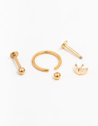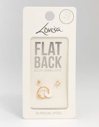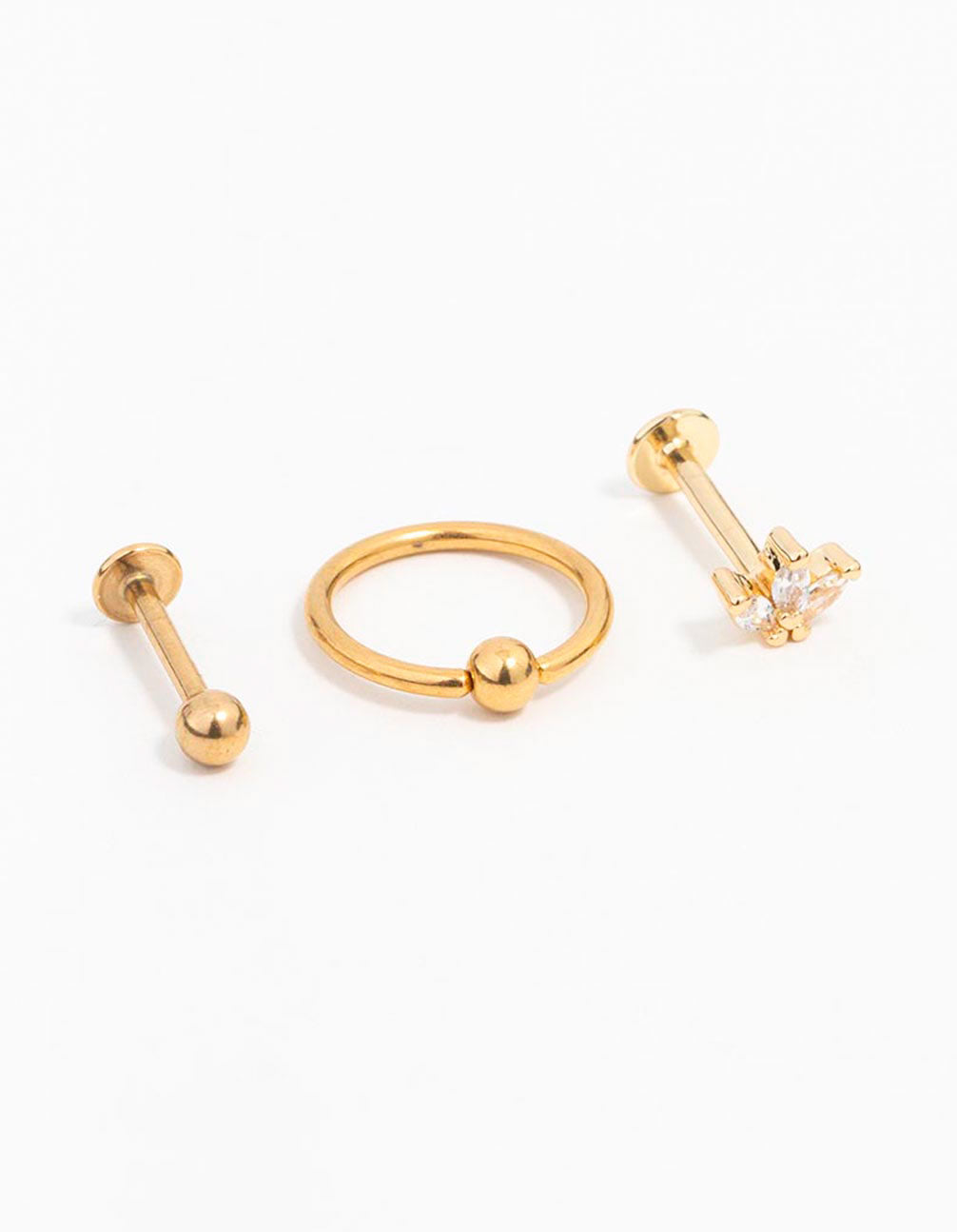 Gold Plated Surgical Steel Marquise & Ball Flat Back Earrings 3-Pack
