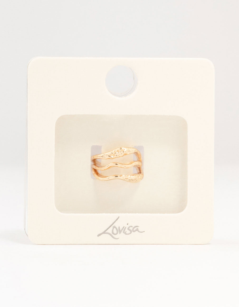 This elegant gold ear cuff boasts a organic texture and feminine design. Made from gold-plated metal, it ensures comfort with an open back for a comfy fit. Its curved shape and organic texture add subtle glamour, accentuating outfits beautifully.