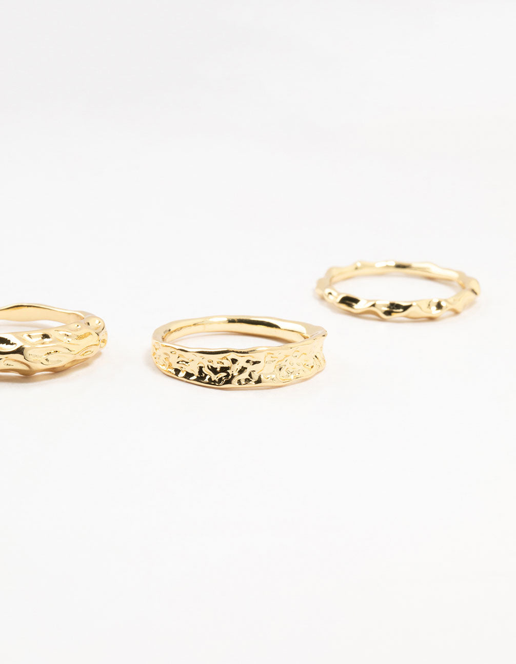 Add texture with this set of 5 gold-plated rings! Crafted to stack and shine, these rings bring playful sophistication to any look. Mix and match for a signature stack that's uniquely yours.