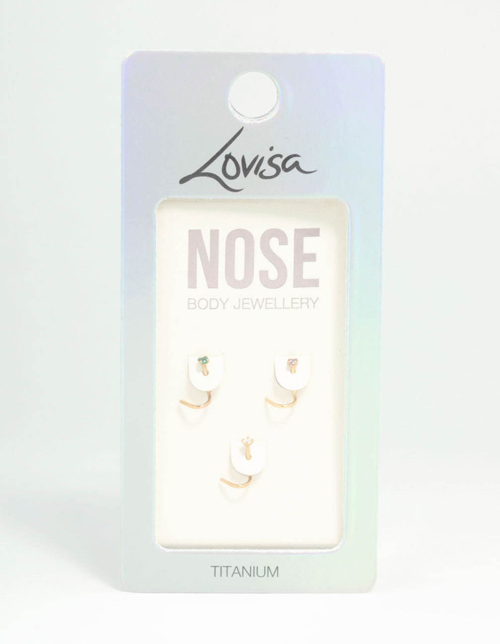 Gold Plated Titanium Classic Gem Nose Studs 3-Pack