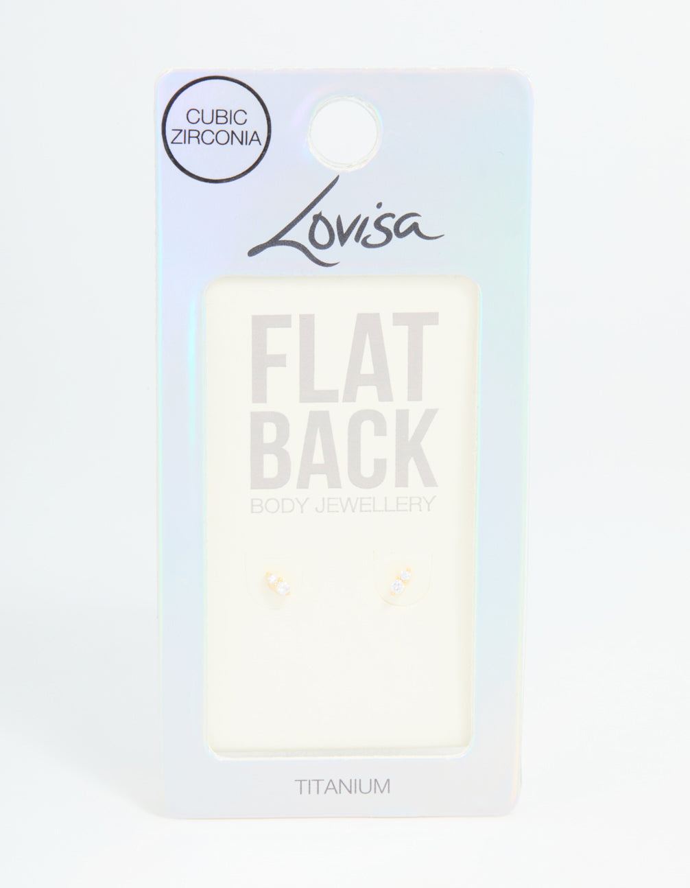 Gold Plated Titanium Cubic Zirconia Flat Back Stud Pack