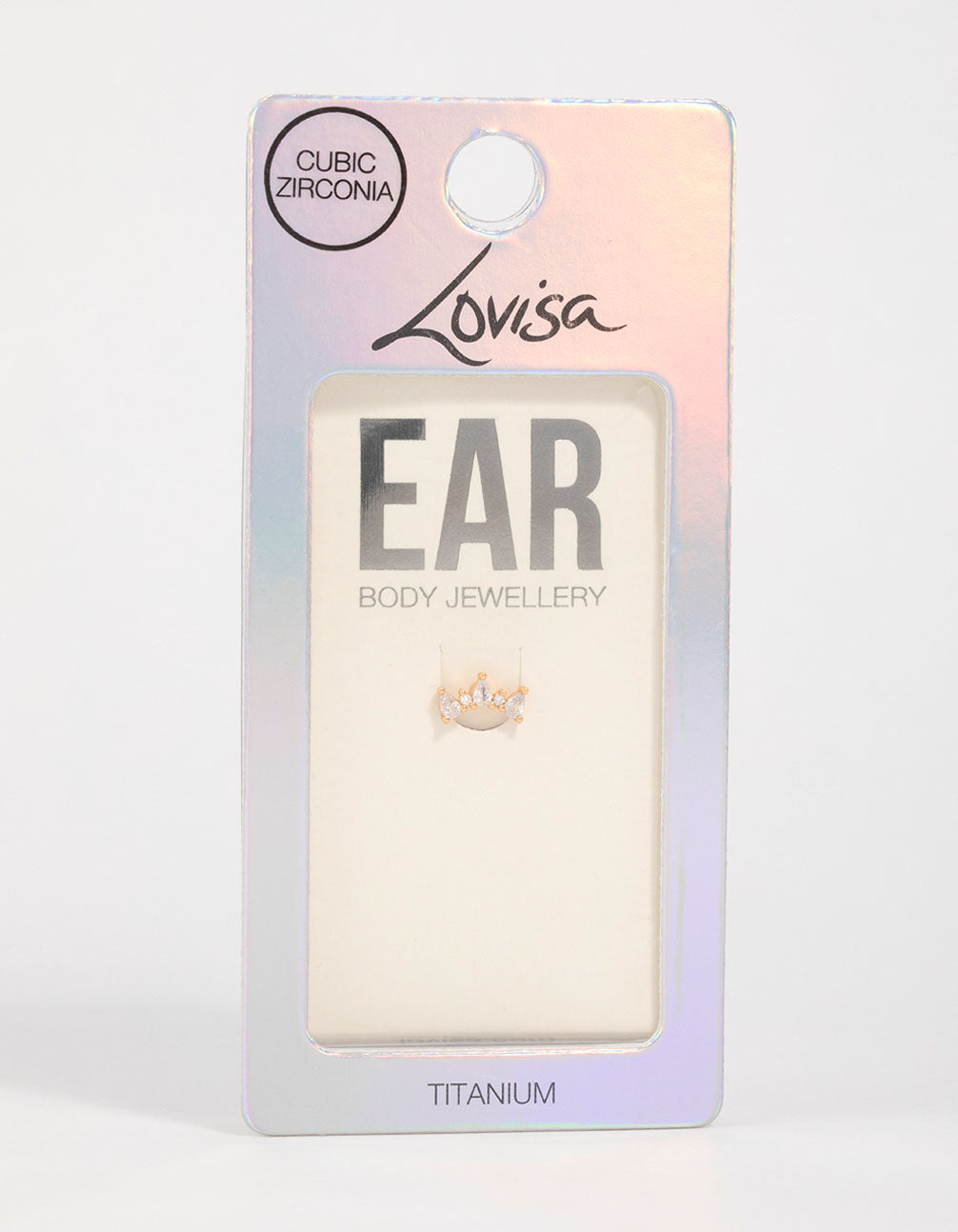 Gold Plated Titanium Cubic Zirconia  Pear Crawler Flat Back Stud Gold Plated Titanium Cubic Zirconia  Pear Crawler Flat Back Stud Gold Plated Titanium Cubic Zirconia  Pear Crawler Flat Back Stud