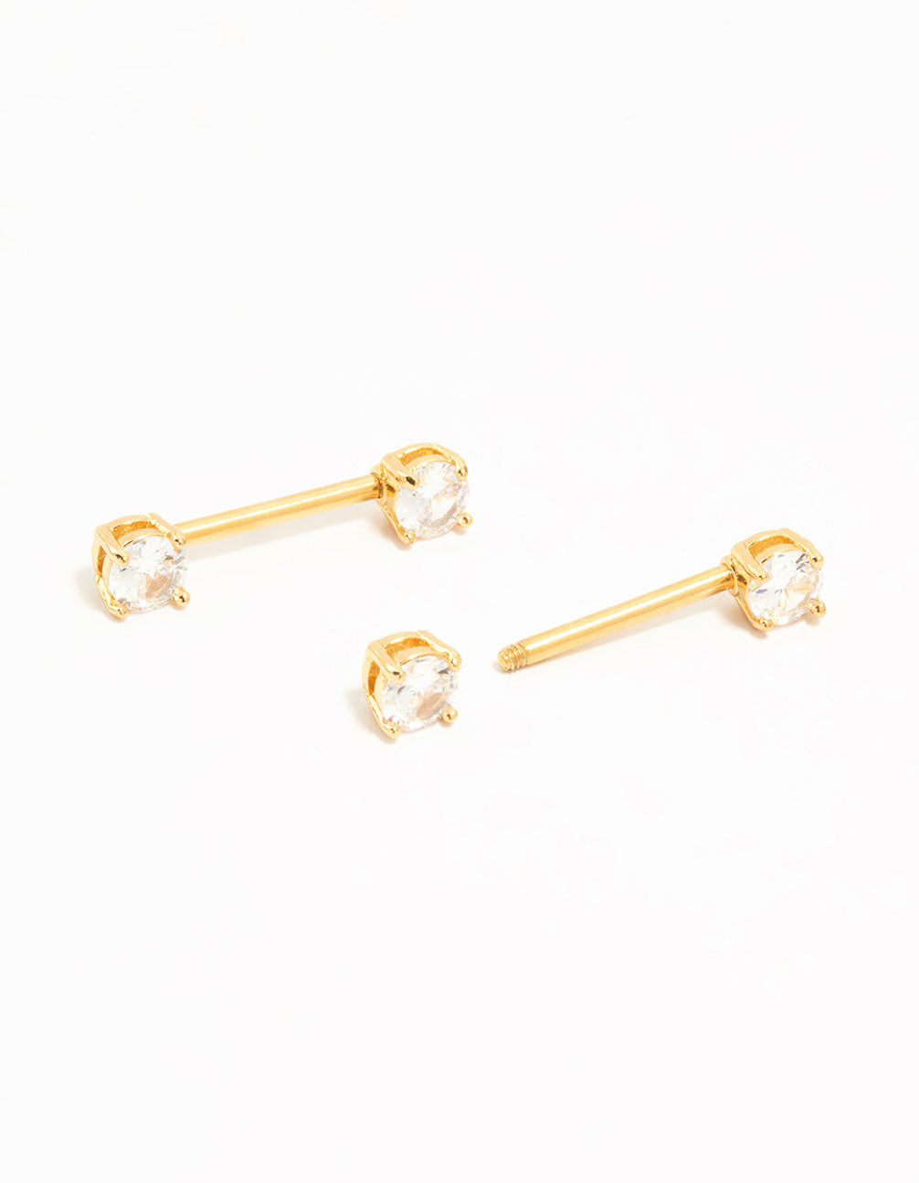 Gold Plated Titanium Round Cubic Zirconia Nipple Bars 2-Pack