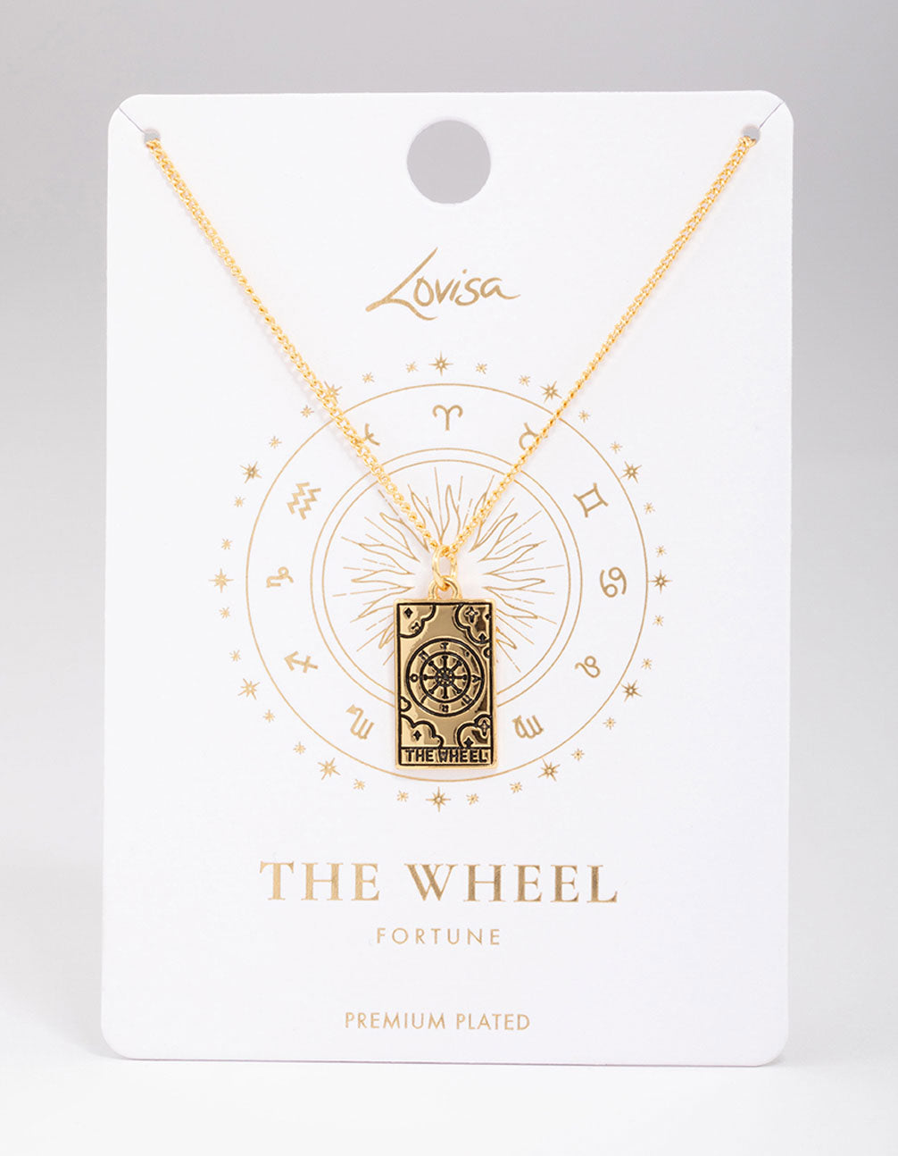 Gold Plated Wheel Tarot Card Pendant Necklace