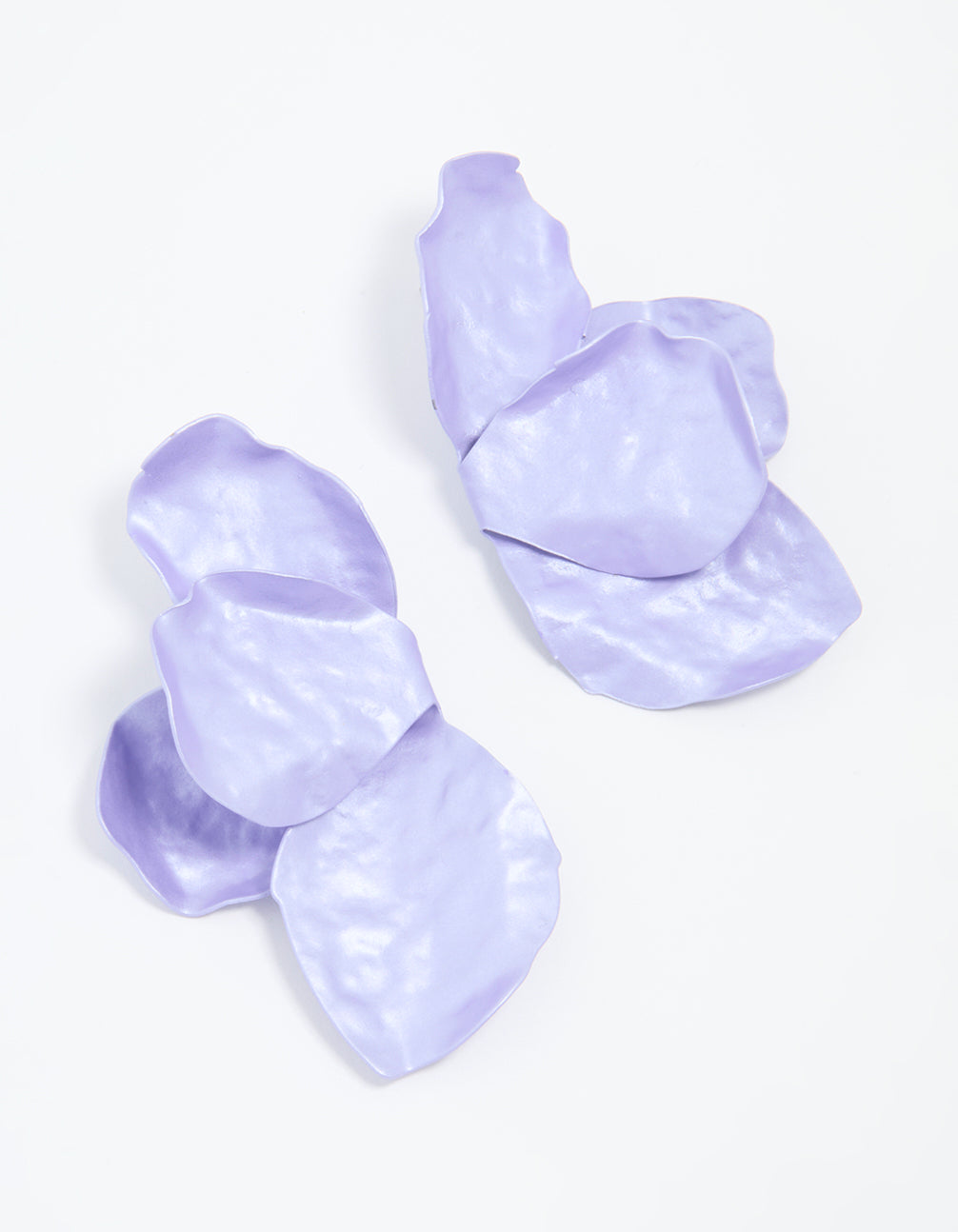 Gold Purple Coated Metal Flower Petal Drop Earrings