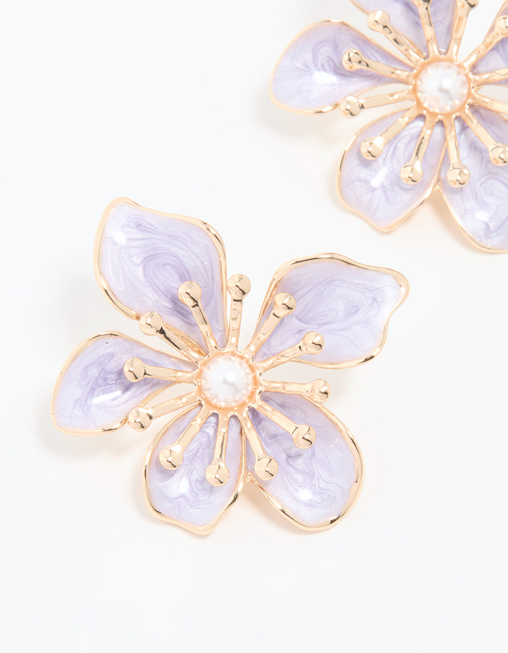 Add a playful pop of colour to your jewellery collection with these Gold Purple Misshaped Flower Stud Earrings. These stud earrings boast a unique design, combining a gold-tone finish with a quirky, misshaped flower in vibrant purple. Perfect for everyday wear or adding a fun twist to a casual outfit, these earrings are a great pick for brunch dates, coffee catch-ups, or even a laid-back evening out. Style them with a flowy dress for a touch of whimsy or pair them with a crisp shirt and jeans for an effortless, chic vibe. Whether you're after a statement stud or a versatile go-to accessory, these floral-inspired earrings are sure to brighten up your look.