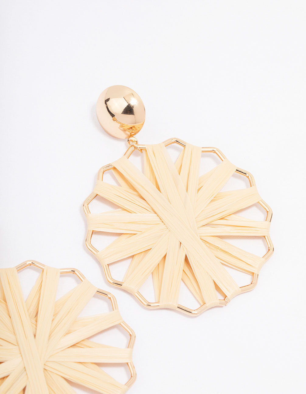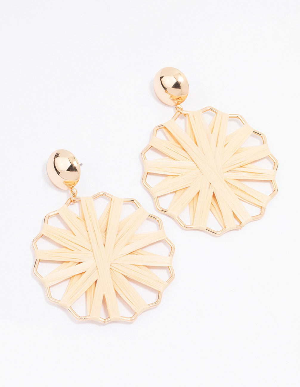 For a textural finish to your look, style these raffia drop earrings. These unique statement earrings feature a gold-toned stud, adorned with a floral-inspired raffia design. Perfect for defining your ear stack!