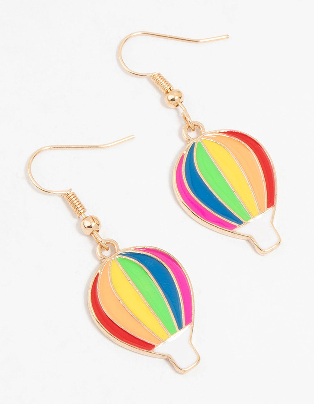 Gold Rainbow Hot Air Balloon Drop Earrings