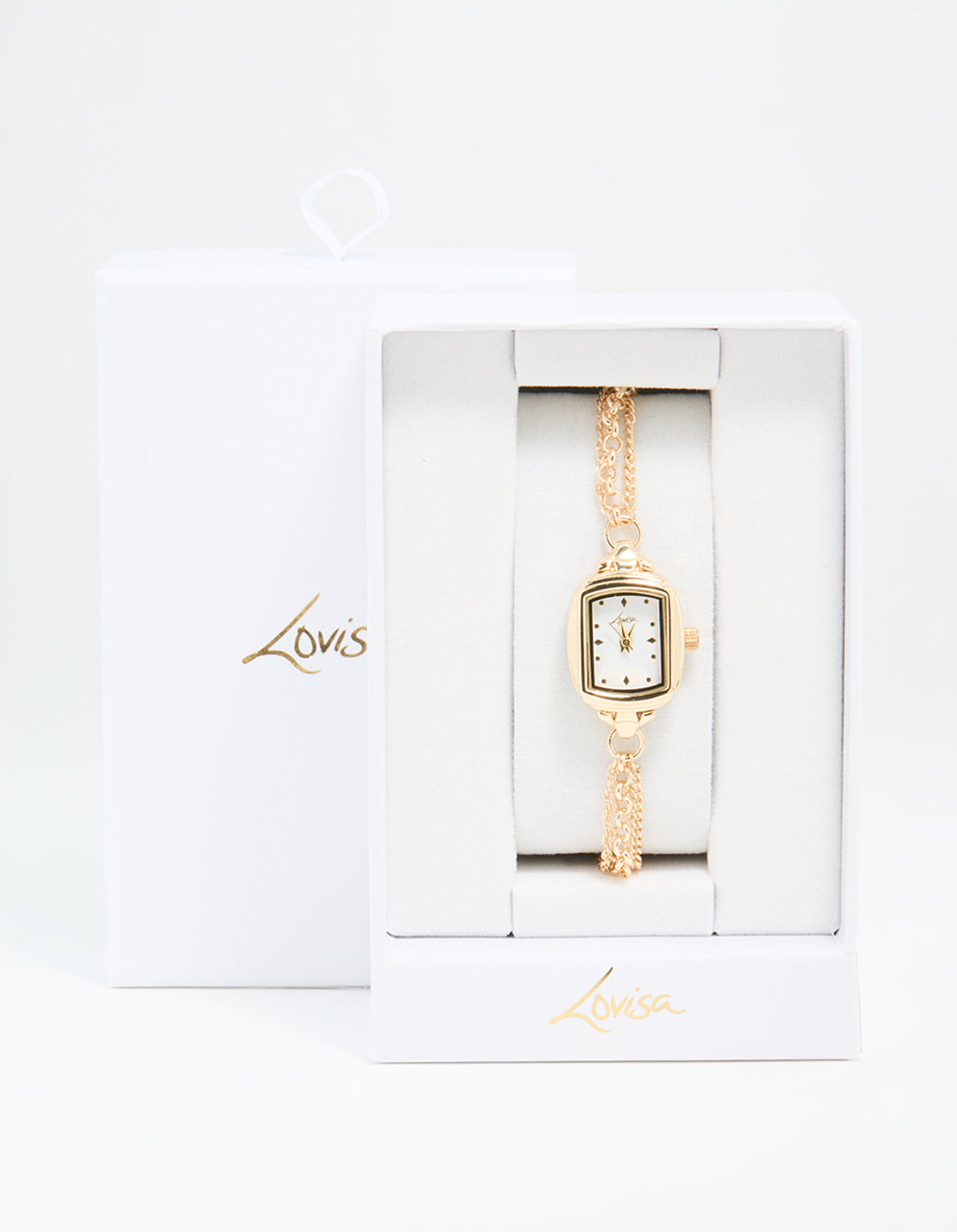 Add a touch of elegance to your wrist with this Gold Rectangle Chain Watch Bracelet. Perfectly blending the functionality of a watch with the sophistication of a bracelet, this piece features a sleek rectangular design and a chic gold chain strap. Its versatile style makes it an ideal accessory for both casual outings and dressed-up occasions. Pair it with your favourite rings or bangles for a stacked jewellery look, or wear it solo to let its minimalist charm shine. Whether you're heading to brunch, the office, or a night out, this gold-tone watch bracelet is your go-to for effortless sophistication.