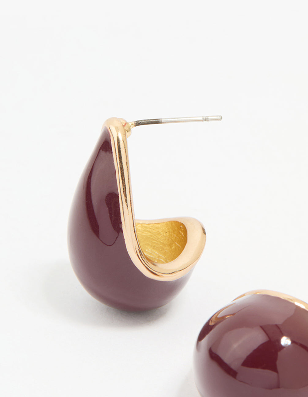 Gold Red Enamel Chunky Teardrop Hoop Earrings