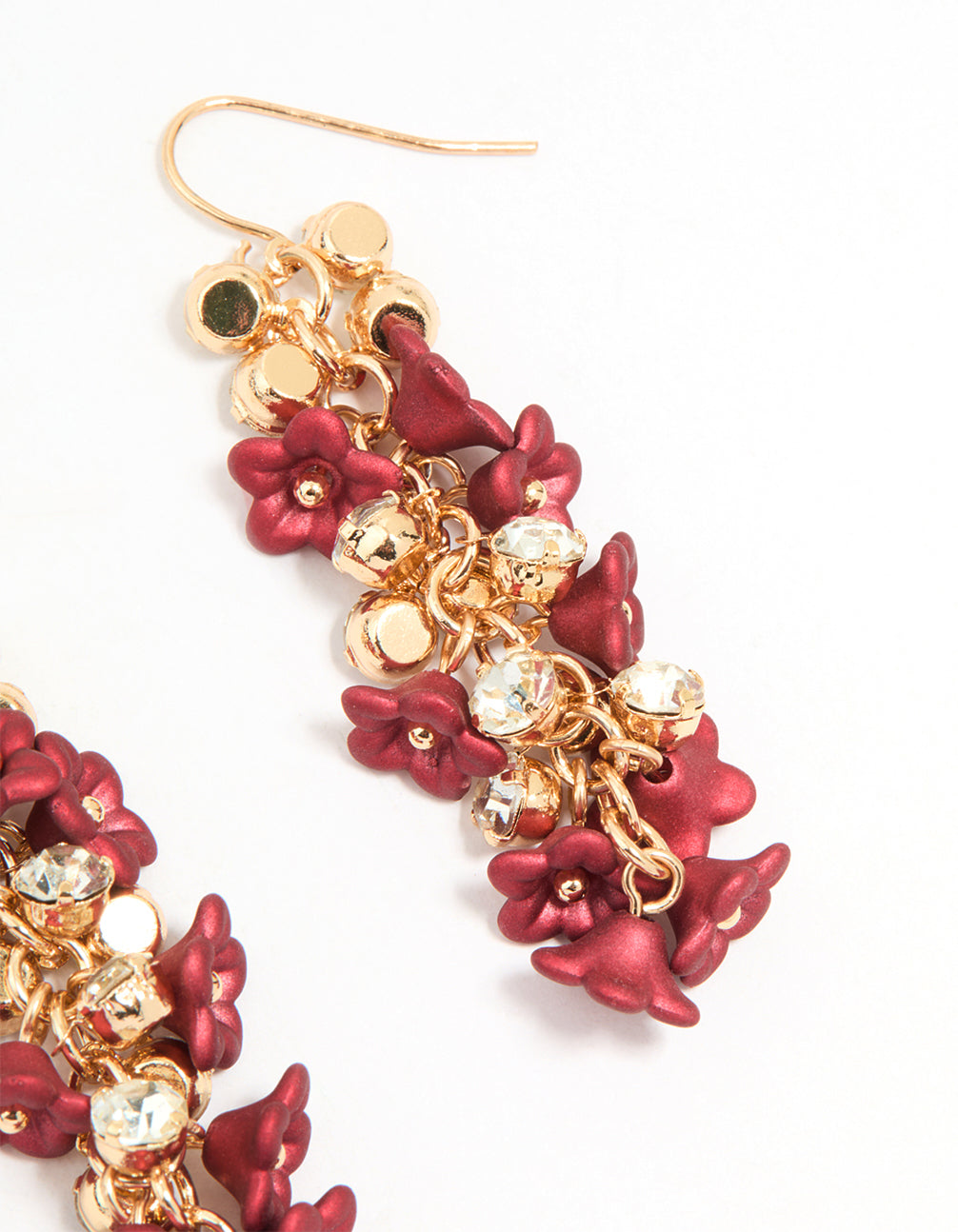 Gold Red Flowers Chain Drop Earrings