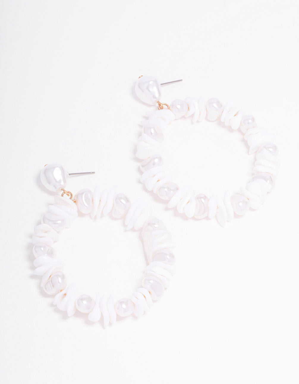 Style these Gold Shell Pearl Open Drop Earrings with a set of simple studs for a layered look.