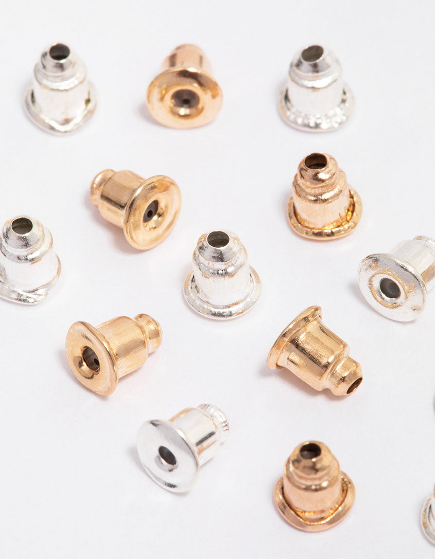 Lost an earring back? We've got you! This tub of gold and silver earring backings is perfect for keeping in your handbag, luggage, or in your jewellery box for fashion emergencies.