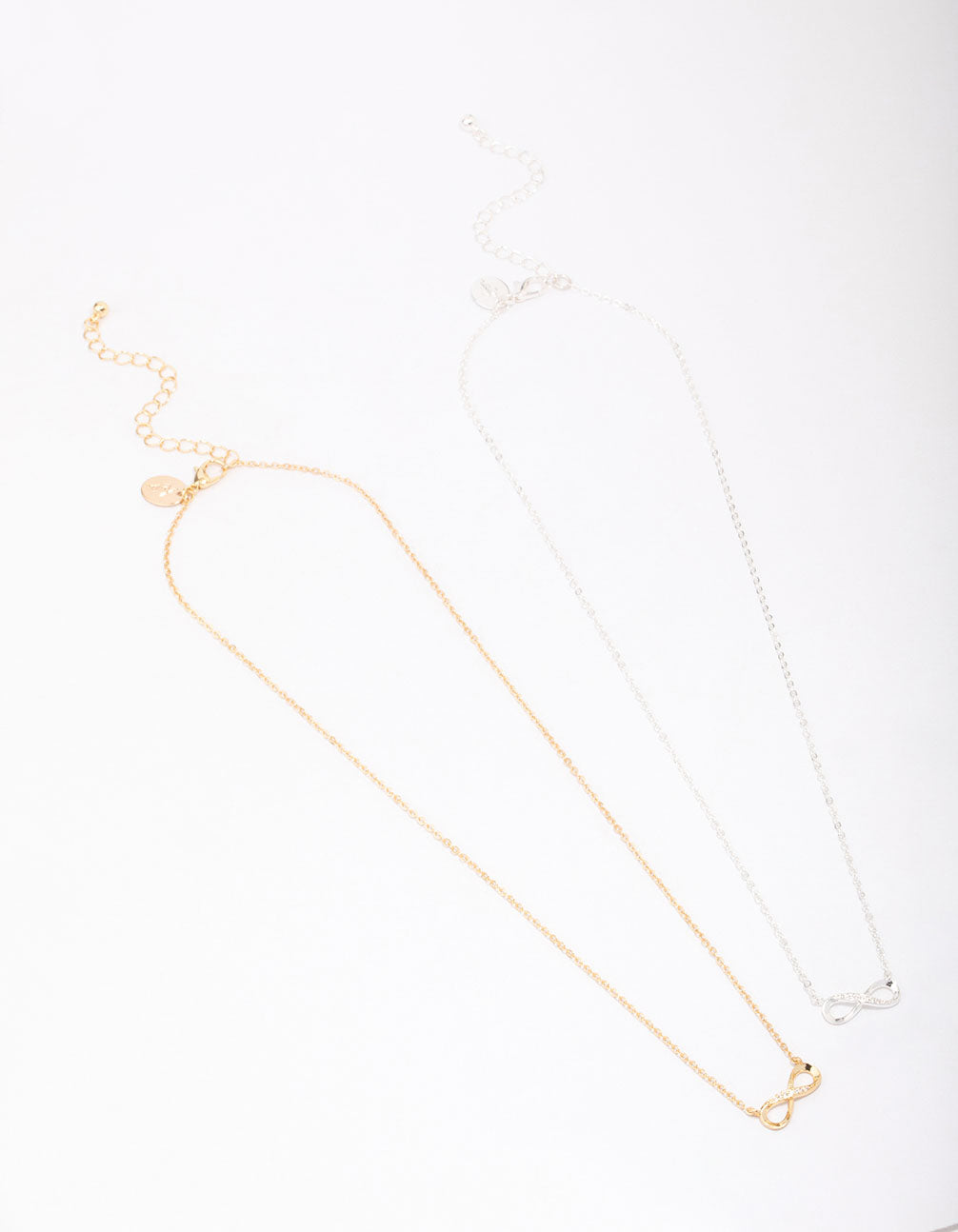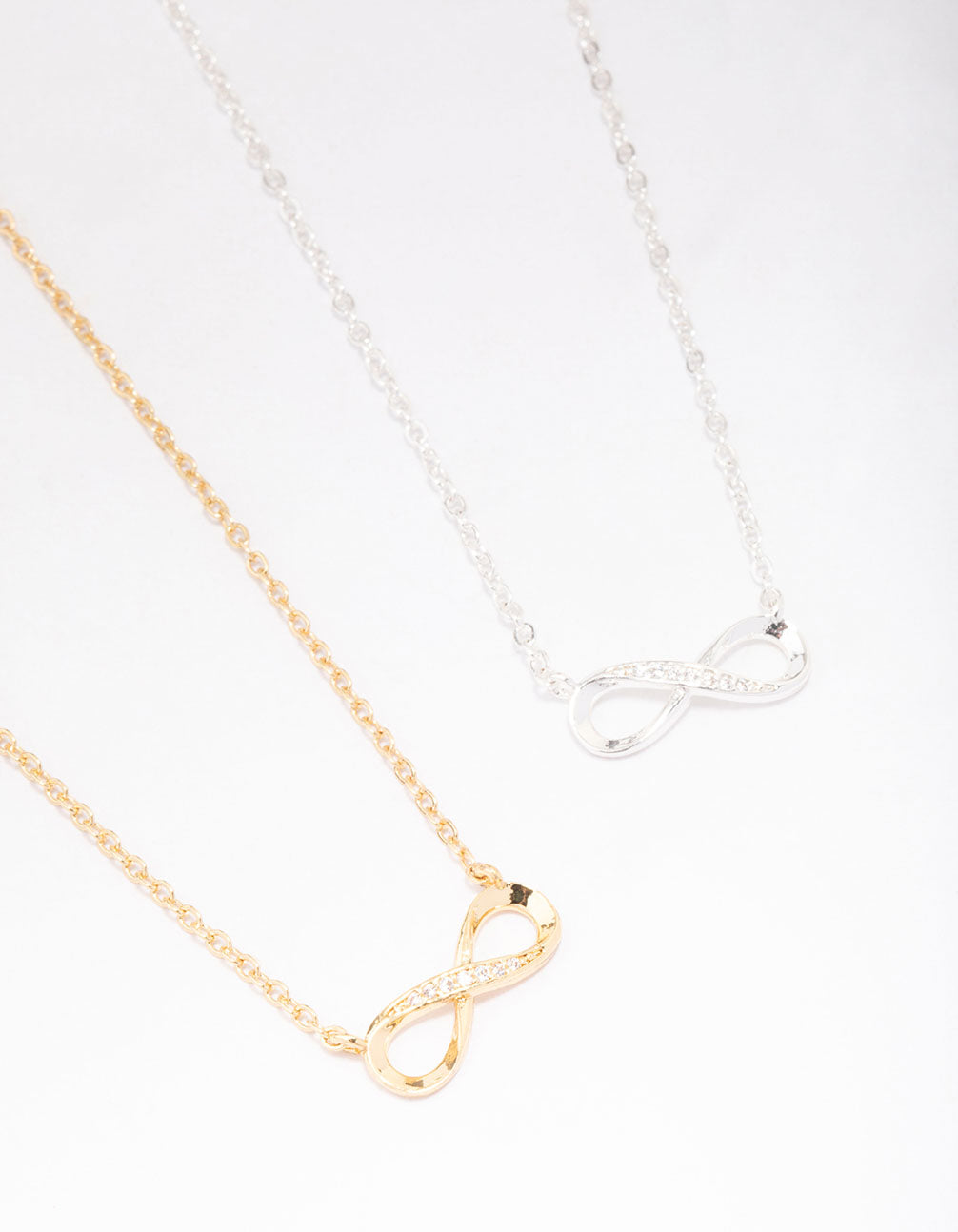 Surprise your loved ones with sentimental gifts at Lovisa! This necklace pack includes a gold and silver plated pendant necklace, adorned with a timeless infinity symbol. The perfect 'I love you' gift for your bestie, mum or partner!