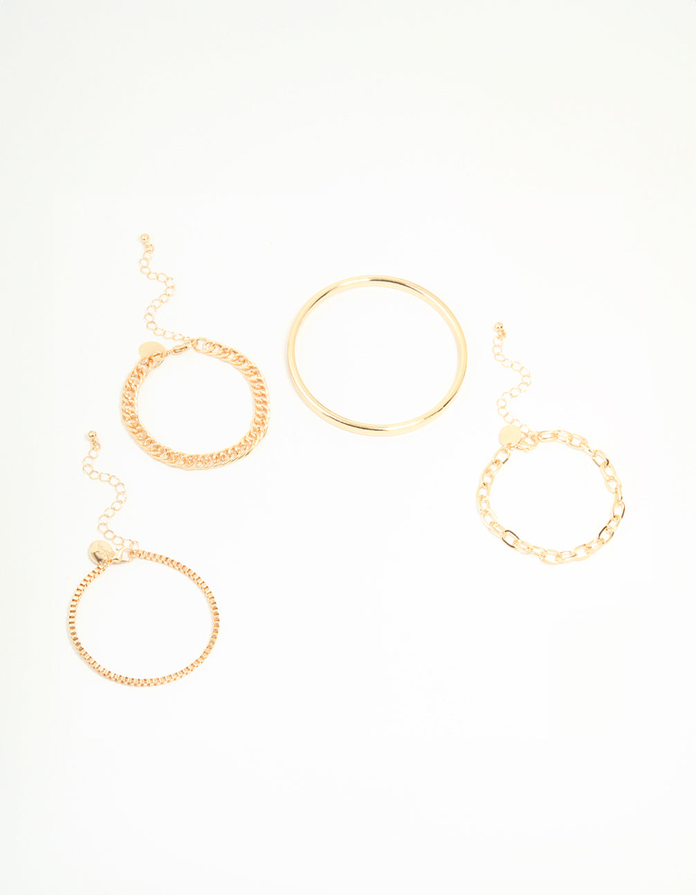 Gold Smooth & Chain Bracelets 4-Pack Gold Smooth & Chain Bracelets 4-Pack Gold Smooth & Chain Bracelets 4-Pack