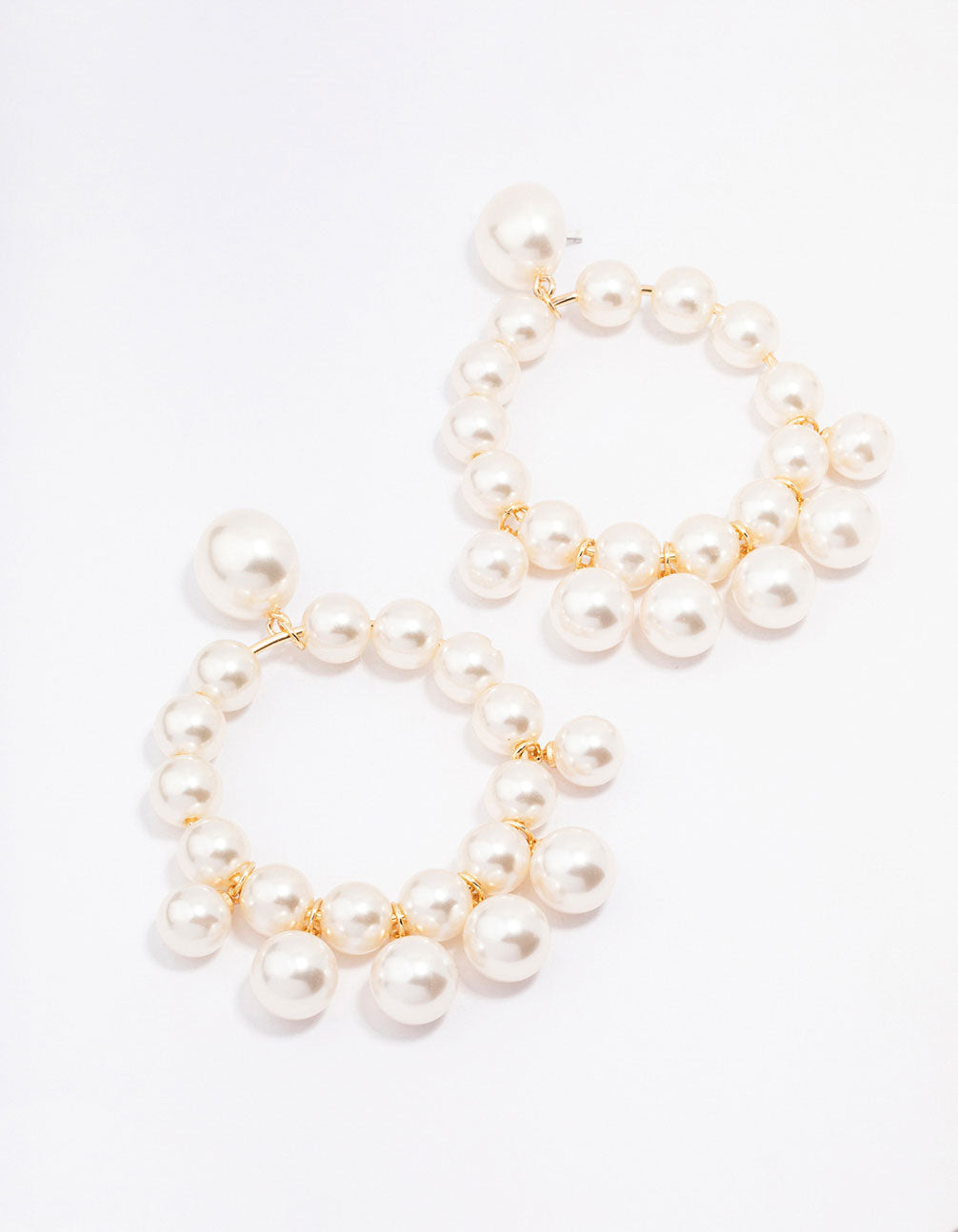 Pearls are trending! Style the pearl trend with these gorgeous, gold-toned hoop earrings. These drops feature a circular silhouette, adorned with a collection of pearls for an elevated touch.