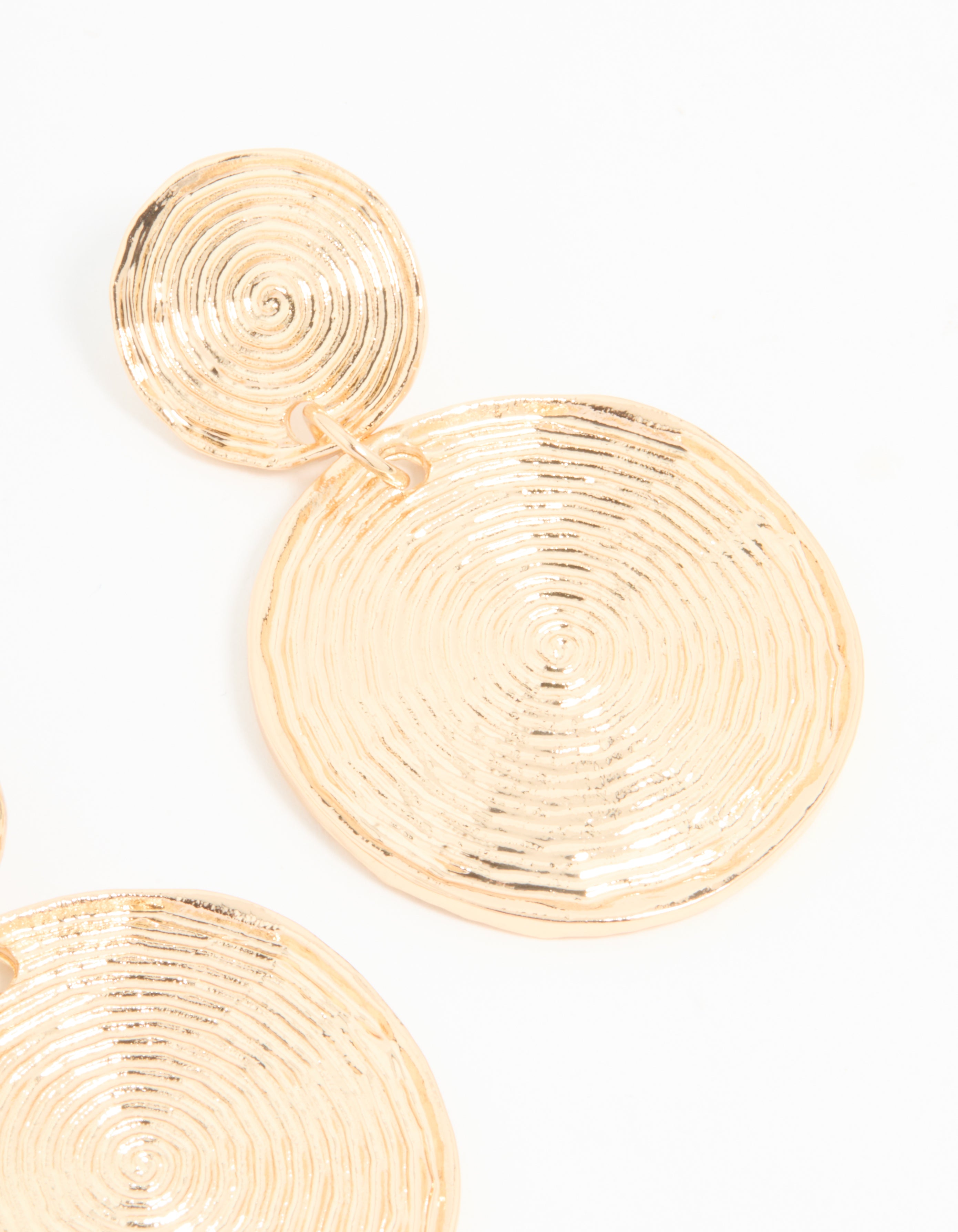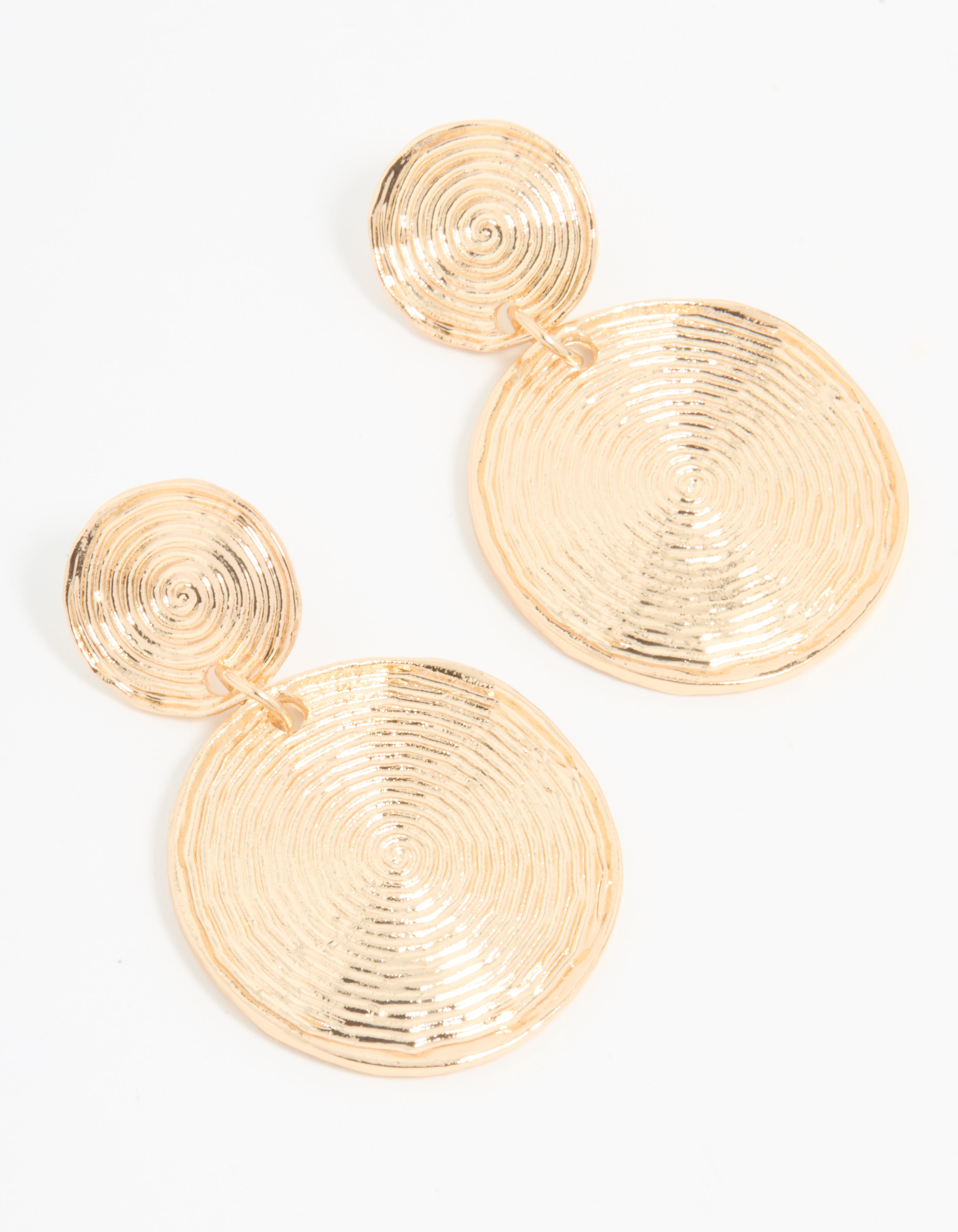 Add a bohemian touch and make a statement with these stunning gold-toned drop earrings! Featuring a unique swirled design, they offer a textured and eye-catching finish. Perfect for upgrading any look.