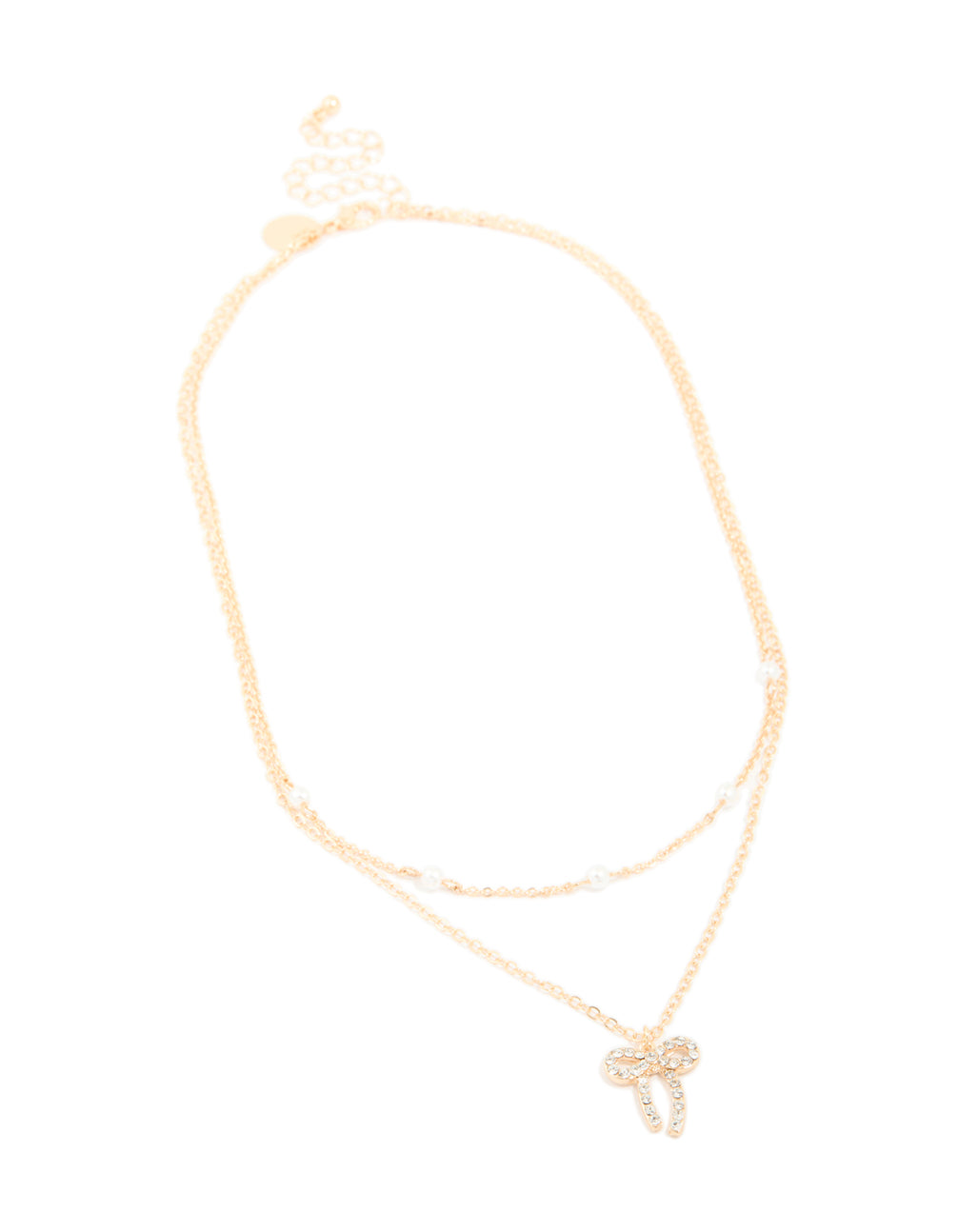 Gold Station Pearl & Diamante Bow Layered Necklace