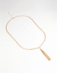 Make a statement with this stunning gold-toned necklace! Featuring a chain link and playful bohemian tassel pendant, it's perfect for adding boho flair to any outfit.
