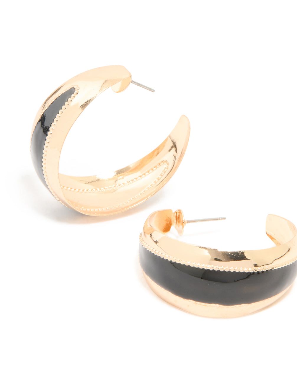 Elevate your style with these Gold Textured Black Tapered Centre Hoop Earrings, a stunning addition to your jewellery collection. These chic gold hoop earrings boast a unique textured design and a sleek black tapered centre, making them perfect for adding a touch of glamour to any outfit. Ideal for evening events or special occasions, they pair effortlessly with elegant dresses or even a tailored blazer for a modern twist. Whether you're heading out for a fancy dinner or a night on the town, these hoops bring a bold, sophisticated edge to your look. Lightweight and versatile, they’re the perfect accessory to make a stylish statement.