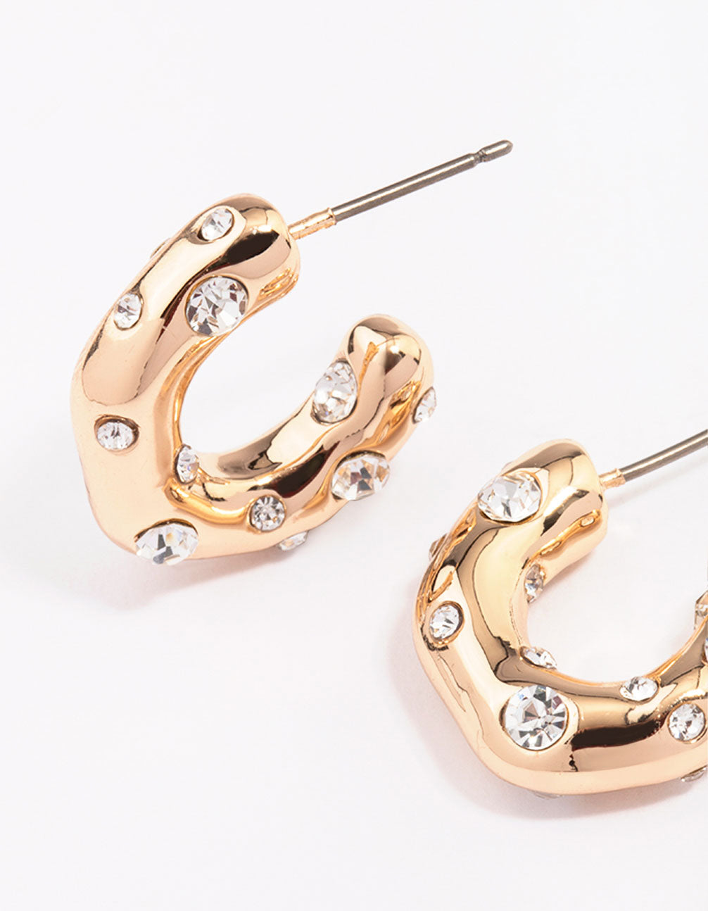 For a modern addition to your stack, style these gorgeous gold-toned hoops. These lovely hoop earrings feature a textured silhouette, encrusted with star-shaped diamantes for an ethereal touch.