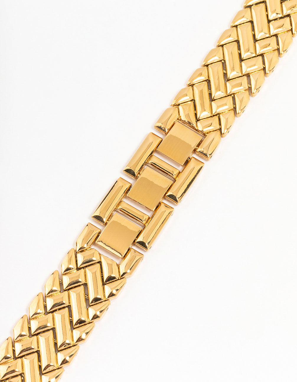 Upgrade your watch with this premium gold textured watch strap for a look that is both fashionable and long lasting. The textured pattern adds visual interest and dimension while the gold finish will matches most outfits.