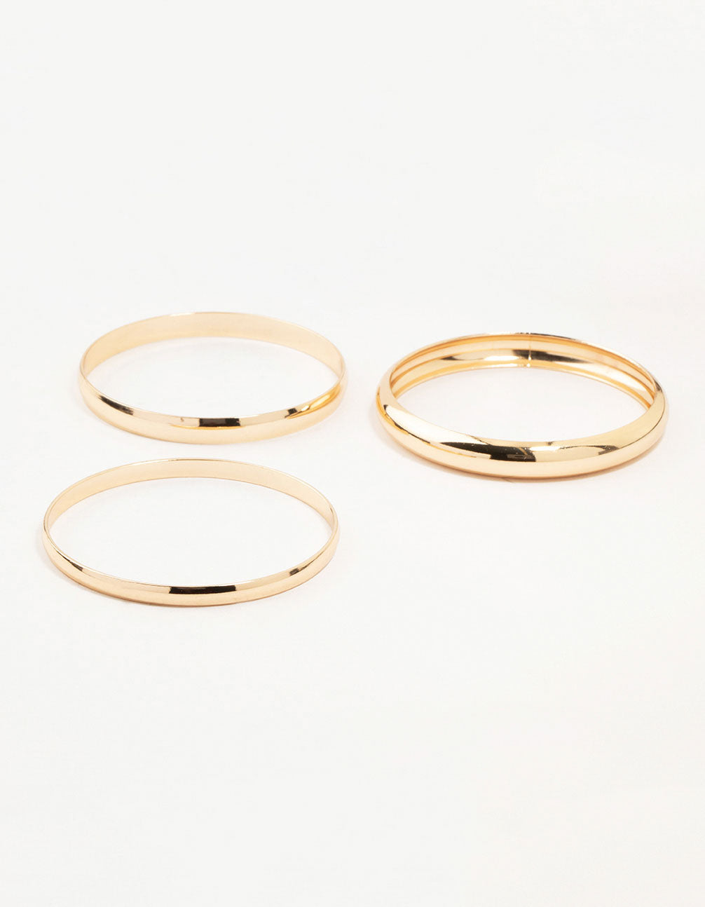 Embrace sleek style with this stunning gold-toned bangle pack! Featuring three thick bangles, it's perfect for a bold yet elegant touch to any outfit.