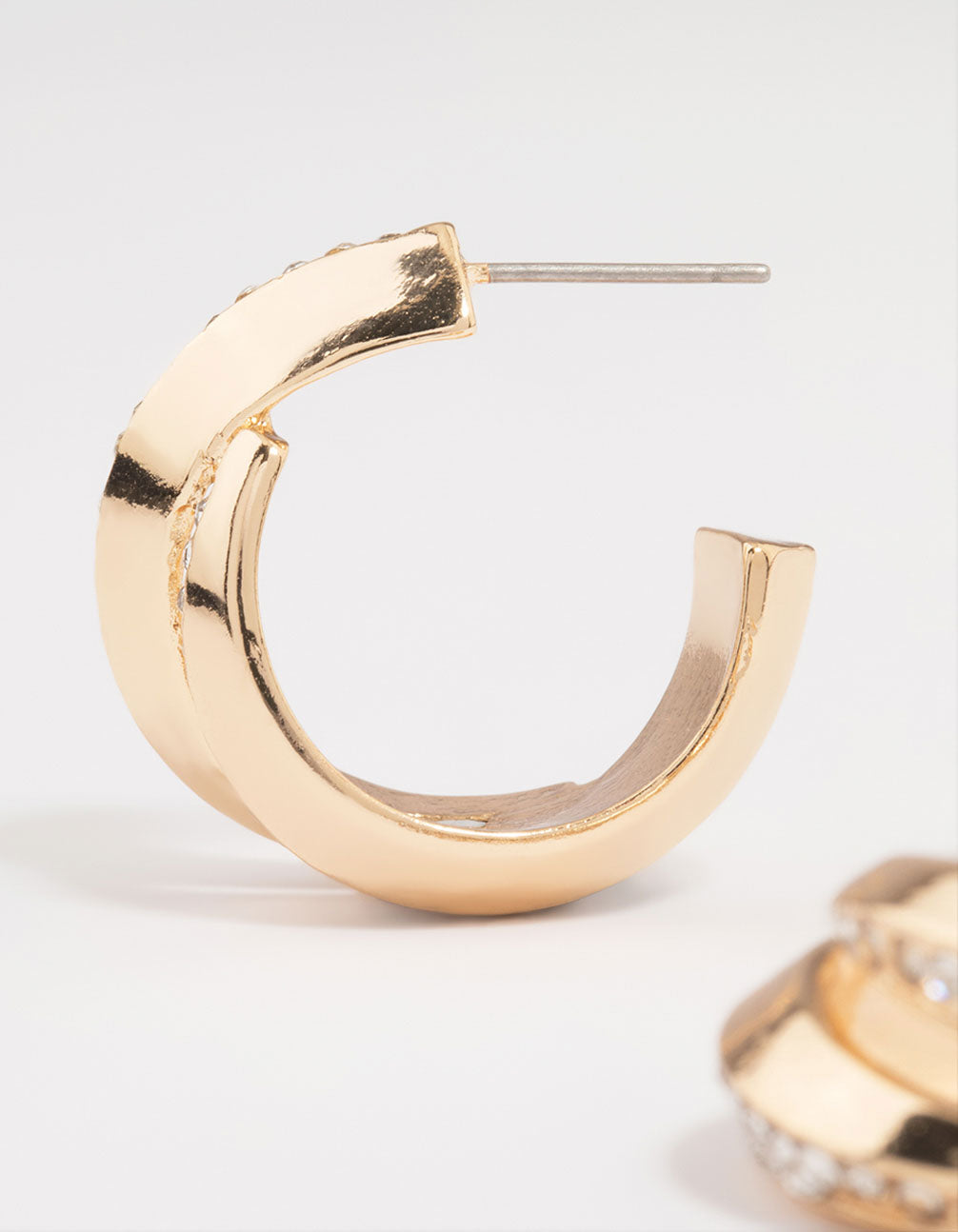 Add some sparkle with these gold-toned hoop earrings! Featuring a thick double band and diamante detailing, they're perfect for a sleek and sparkly style.