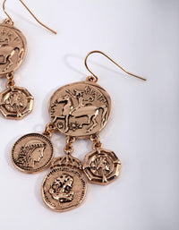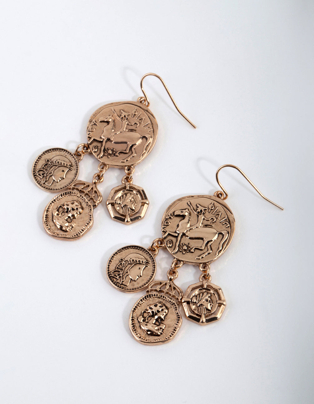 Let out your inner earth child with these funky drops! They're gold toned and they boast a detailed coin design that channels ancient cultures. Wear them with bold colours or lace for a free-spirited look.