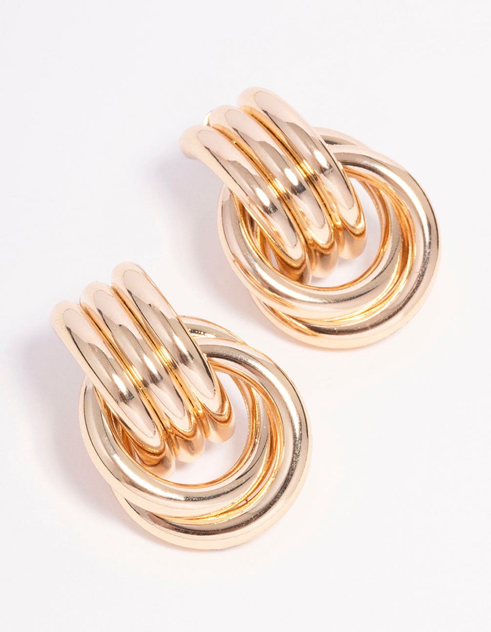 Gold Triple Row Wrapped Knotted Drop Earrings