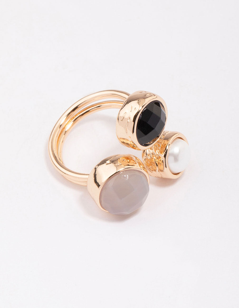 Personalise your stack with this unique cocktail ring. This ring features a gold-toned setting, adorned with a trio of stones and pearls for a curated finish.