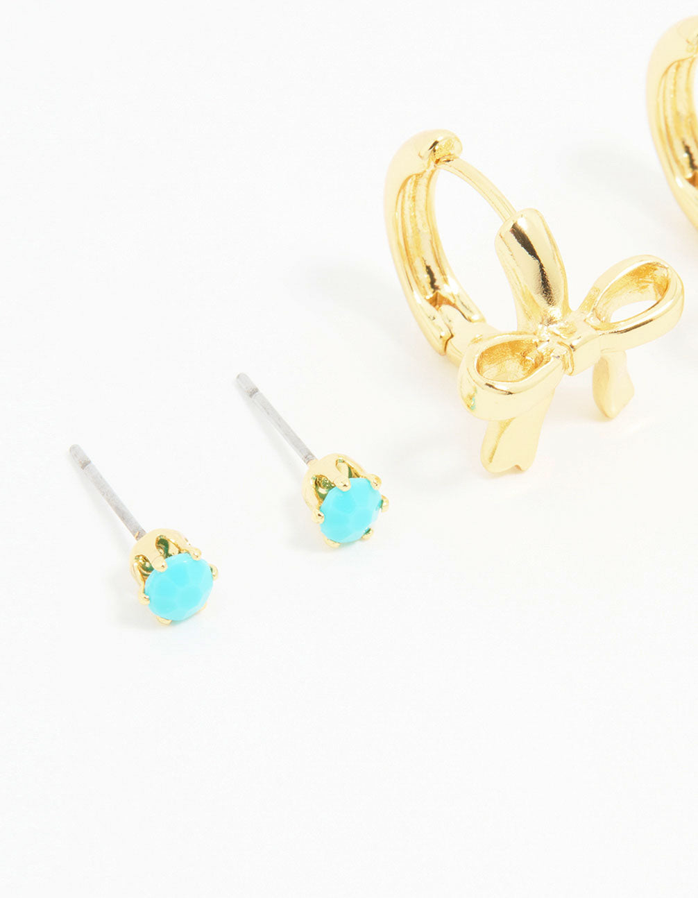 Gold Plated Turquoise Bead & Bow Earrings 3-Pack