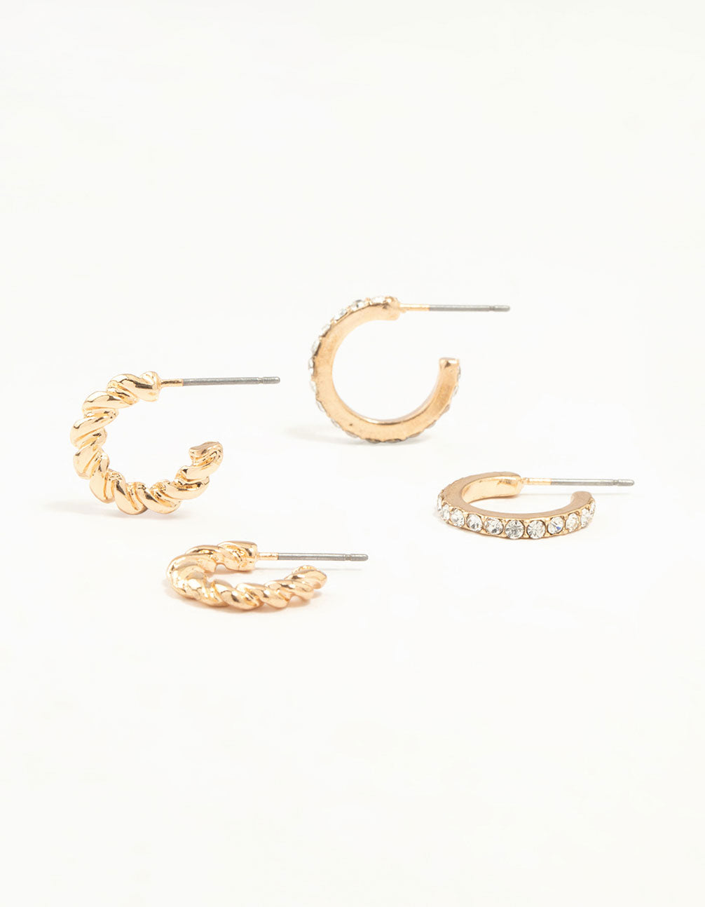 Upgrade your style with this chic gold-toned duo! Featuring twisted hoops and diamante-encrusted hoops, you can choose between sparkle or texture.
