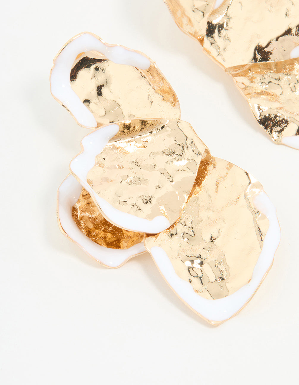 Make a floral statement with these gold-toned drop earrings! Featuring a gold base and white-coated metal petals, they add chic style to any outfit.