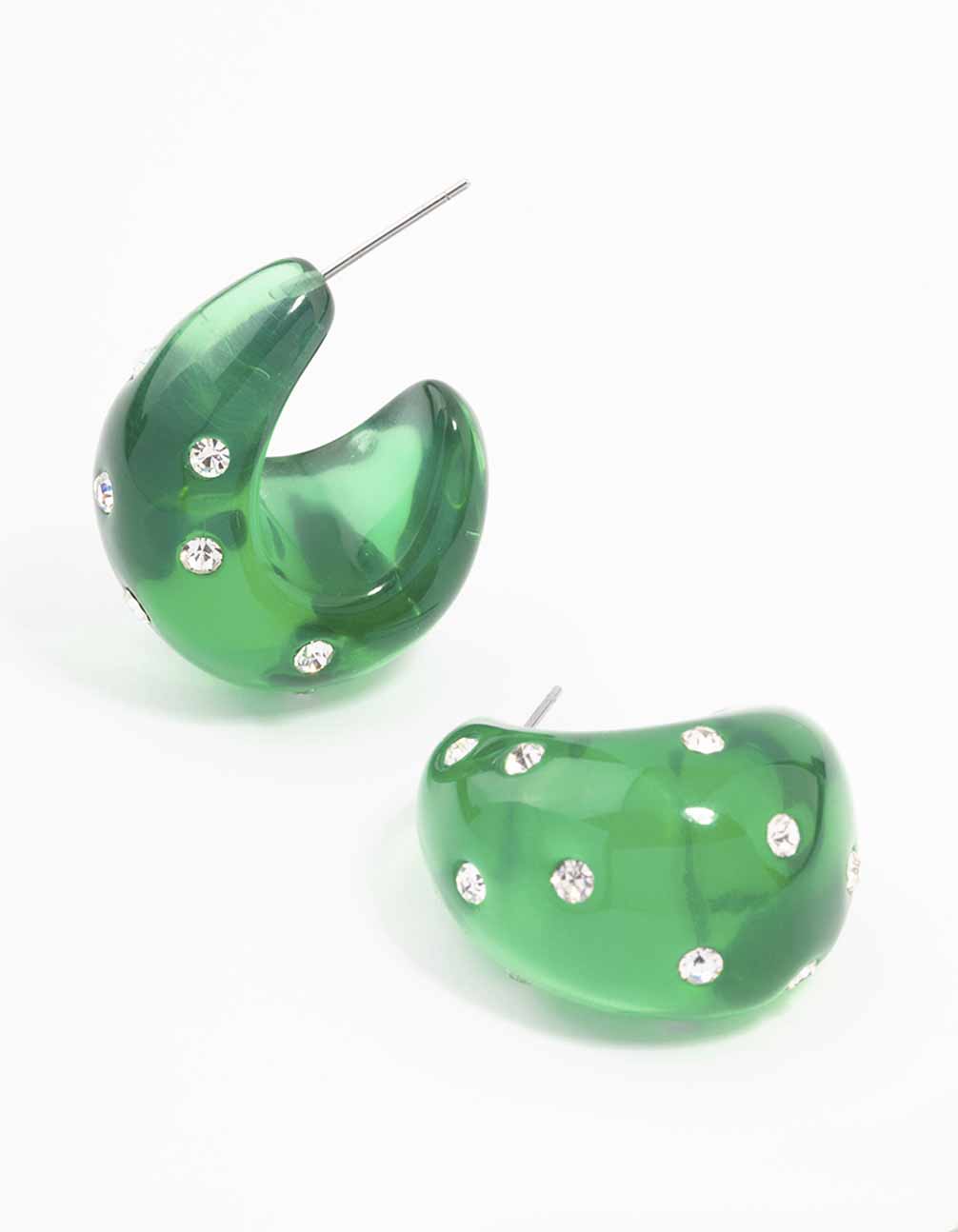 Green Acrylic Chunky Diamante Hoop Earrings Green Acrylic Chunky Diamante Hoop Earrings Green Acrylic Chunky Diamante Hoop Earrings