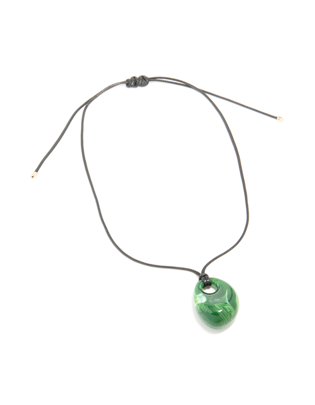 Green Acrylic Chunky Oval Pendant Cord Necklace