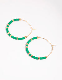 Green Chip Bead Hoop Earrings