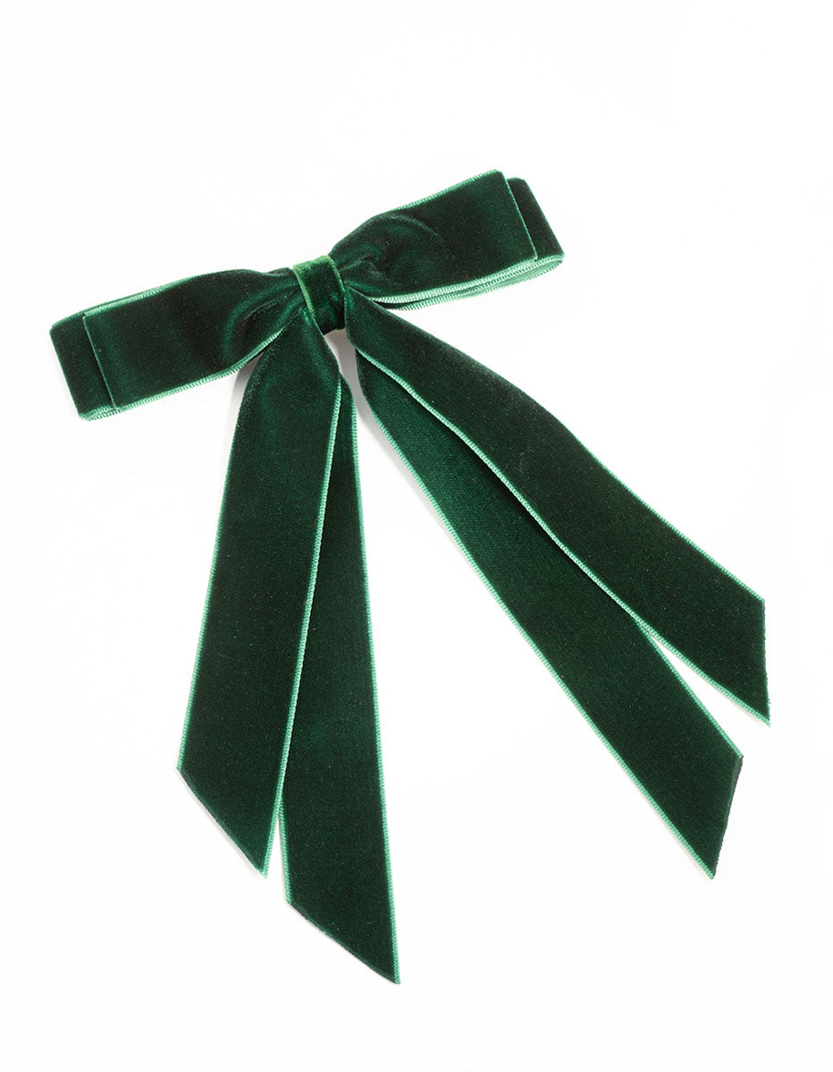 • Green Velvet Fabric Double Bow Hair Clip - link has visual effect only