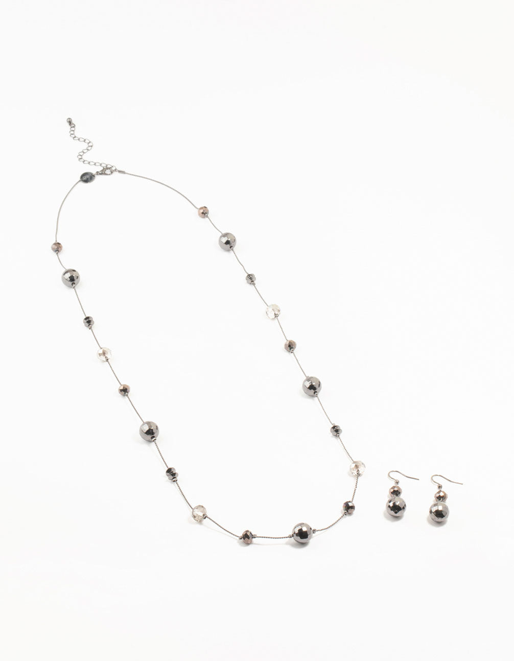 Gunmetal Disco Ball Station Necklace & Earrings Set