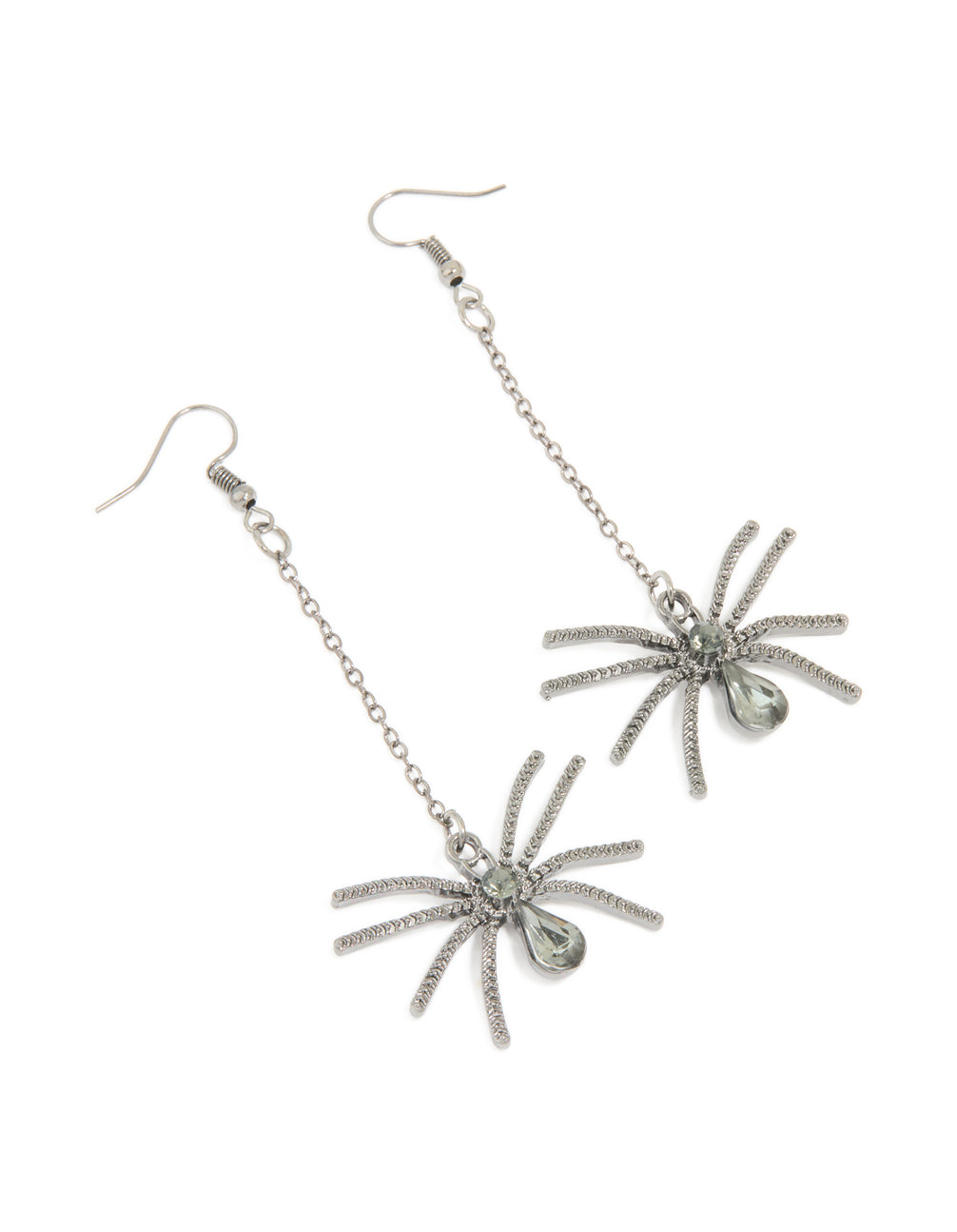 Gunmetal Spider Drop Chain Earrings