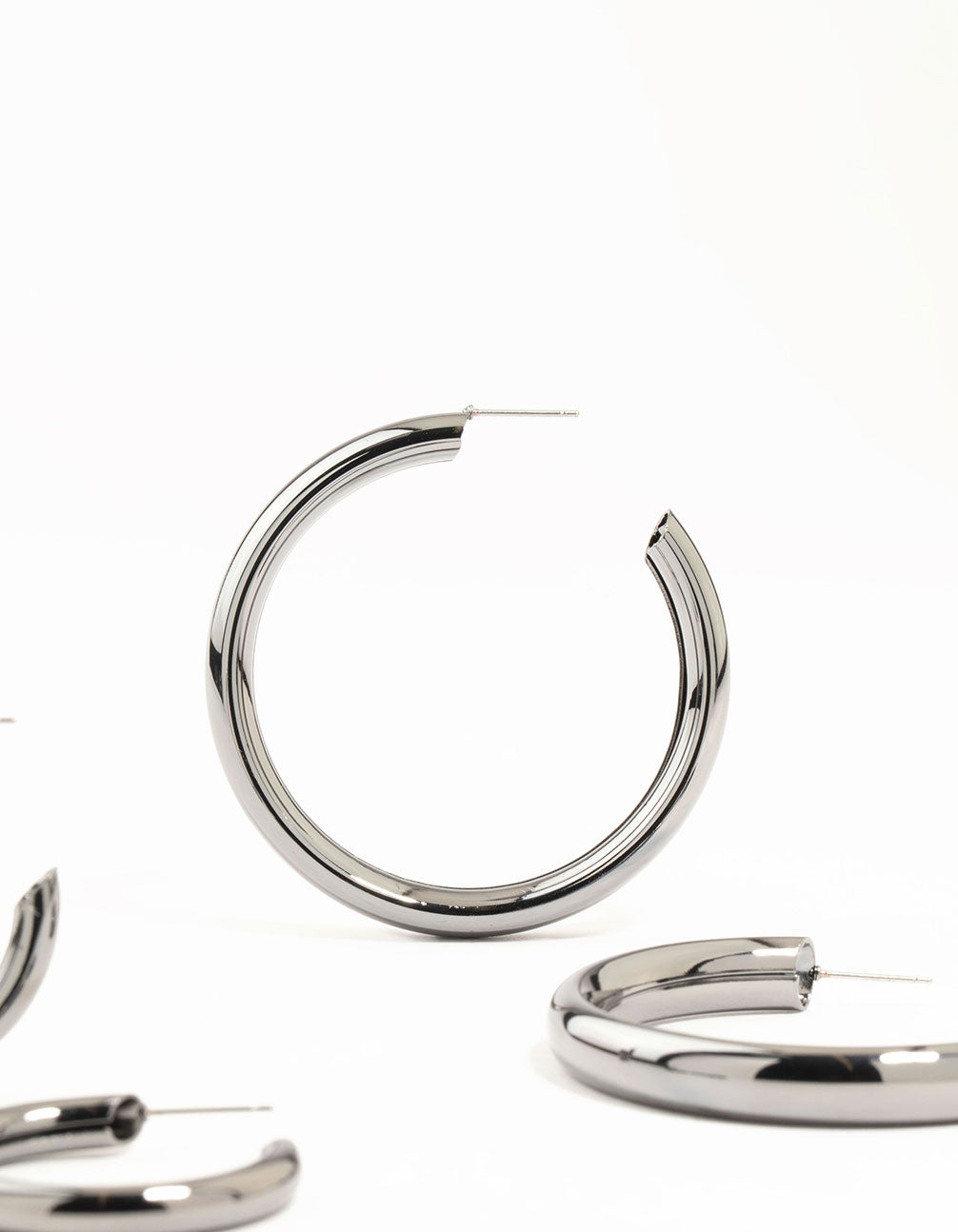 Gunmetal Thick Hoop Earrings 2 Pack